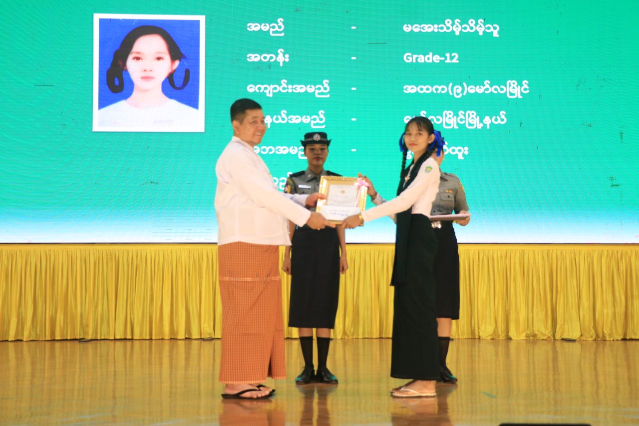 ဆက်လက်၍ ဗဟိုအဆင့်နှင့် ပြည်နယ်အဆင့် ပန်းချီ၊ ကာတွန်း၊ ပိုစတာ၊ ကွန်ပျူတာပန်းချီနှင့် စာစီစာကုံးပြိုင်ပွဲများတွင် ပထမ၊ ဒုတိယ၊ တတိယနှင့် အထူးဆုရရှိသူများအား ပြည်နယ်ဝန်ကြီးချုပ်၊ တိုင်းဦးစီးချုပ်၊ ပြည်နယ်တရားလွှတ်တော်တရားသူကြီးချုပ်၊ ပြည်နယ်အစိုးရအဖွဲ့ဝင်ဝန်ကြီးများနှင့် ပြည်နယ်အဆင့်ဌာနဆိုင်ရာများက ငွေသားဆုနှင့် ဂုဏ်ပြုမှတ်တမ်းလွှာများပေးအပ်ချီးမြှင့်ခဲ့ပြီး မူးယစ်တားဆီးကာကွယ်ရေး ဗဟိုအဖွဲ့၏ ဆောင်ရွက်ချက်မှတ်တမ်း Video အား ပြသ၍ အမှတ်တရဓာတ်ပုံများ ရိုက်ကူးခဲ့ကြကာ ခန်းမအတွင်း ခင်းကျင်းပြသထားသော မူးယစ်ဆေးဝါးနှင့်ပတ်သက်သည့် နံရံကပ်ပြဘုတ်များအား လှည့်လည်ကြည့်ရှု အားပေးခဲ့ကြောင်း သိရှိရသည်။