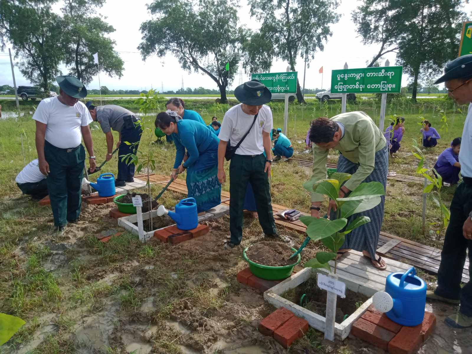 ထို့နောက် သစ်ပင်စိုက်ပျိုးပွဲသို့ တက်ရောက်လာကြသော ခရိုင်စီမံအုပ်ချုပ်ရေးအဖွဲ့ဝင်များ၊ မြို့နယ်စီမံအုပ်ချုပ်ရေးအဖွဲ့ဝင်များ၊ ဌာနဆိုင်ရာများမှ တာဝန်ရှိသူများ၊ လူမှုရေးအသင်းအဖွဲ့များ နှင့် ဒေသခံပြည်သူများမှ ကျွန်းပင် ၅၀ ၊ ယူကလစ်ပင် ၁၀၀ ၊ မန်ဂျန်ရှားပင် ၂၀၀ ၊ မဟော်ဂနီပင် ၅၀ နှင့် ခရေပင် ၁၀၀ စုစုပေါင် စိုက်ပျိုးပင် (၅၀၀) အား အတူတကွ စုပေါင်းစိုက်ပျိုးခဲ့ကြကြောင်း သိရသည်။