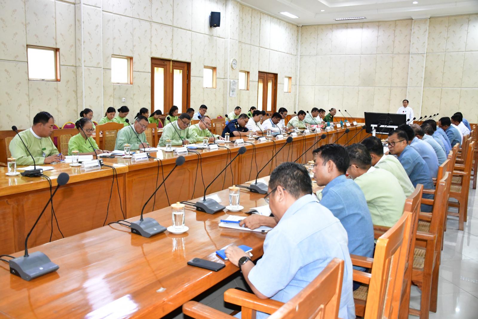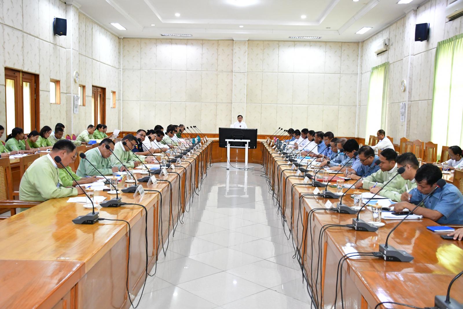 ဦးစွာ နေပြည်တော်ကောင်စီဥက္ကဋ္ဌ ဦးသန်းထွန်းဦးက အမှာစကားပြောကြားရာတွင် နေပြည်တော်ကို နိုင်ငံတော်၏ မြို့တော်ဖြစ်သည်နှင့်အညီ ဘက်စုံဖွံ့ဖြိုးတိုးတက်ရေးလုပ်ငန်းများကို အဓိကထား ဆောင်ရွက်လျက်ရှိပြီး မြို့တော်အား Clean City, Green City, Smart City ဖြစ်စေရေး ကြိုးပမ်းဆောင်ရွက်လျက်ရှိကြောင်း၊ ပြည်ထောင်စုဝန်ကြီးဌာနရုံးများ အတွင်း/အပြင် သန့်ရှင်းသာယာလှပရေး၊ ဝန်ထမ်းအိမ်ရာတိုက်ခန်းများ စနစ်တကျသန့်ရှင်းသာယာလှပရေး၊ စိမ်းလန်းစိုပြည်ရေး၊ ဝန်ထမ်း အပျို/လူပျိုဆောင်များ၊ ဝန်ထမ်းအိမ်ရာများ စည်းစနစ်တကျနေထိုင်စေရေး အိပ်ဆောင်ဝန်းကျင်နှင့် အိပ်ဆောင်သာယာလှပရေးတို့ကို အဓိကထားဆောင်ရွက်ကြရမှာ ဖြစ်ကြောင်း၊ နေပြည်တော်အတွင်း ရေစီးရေလာကောင်းမွန်စေရေးကို အလေးထားဆောင်ရွက် ကြရမှာဖြစ်ကြောင်း၊ နိုင်ငံတစ်ဝှမ်းပလတ်စတစ် ညစ်ညမ်းမှုပြဿနာများ ဖြေရှင်းကြရာတွင် ဈေးကွက်အတွင်းသို့ ပလတ်စတစ်ပစ္စည်းများ ပိုမိုဝင်ရောက်လာခြင်းကို တားဆီးကာကွယ်ရန်၊ စွန့်ပစ်ပစ္စည်းကင်းစင်သော ကျေးရွာ၊ ရပ်ကွက်၊ မြို့ပြများ ပေါ်ပေါက်လာရန်၊ ပလပ်စတစ်အစား ထိုးထုပ်ပိုးမှုများကို တွင်တွင်ကျယ်ကျယ် အကောင်အထည်ဖော် ဆောင်ရွက်ရေးကို ကျယ်ကျယ်ပြန့်ပြန့် အသိပညာပေးဆောင်ရွက်ကြရန် လိုအပ်ကြောင်း၊ ထို့အပြင် ယခုမိုးဦးကာလ ရောက်ရှိလာသည်နှင့်အမျှ ခြင်၊ ယင် နှိမ်နင်းရေး၊ ပိုးလောက်လမ်း နှိမ်နင်းရေး၊ အထူးသဖြင့် သွေးလွန်တုပ်ကွေးရောဂါအန္တရာယ် မဖြစ်ပွားစေရေးအတွက် ကြိုတင်ကာကွယ်ရေးလုပ်ငန်းများကို သက်ဆိုင်ရာ နေပြည်တော် ကျန်းမာရေးဌာနမှ ဆောင်ရွက်နေမှုအပေါ် ဌာနဆိုင်ရာများအနေနဲ့ အမျှော်အမြင်ရှိရှိနှင့် ကြိုတင်မျှော်တွေး ပေါင်းစပ်ဆောင်ရွက်ကြရမှာဖြစ်ကြောင်း ပြောကြားသည်။