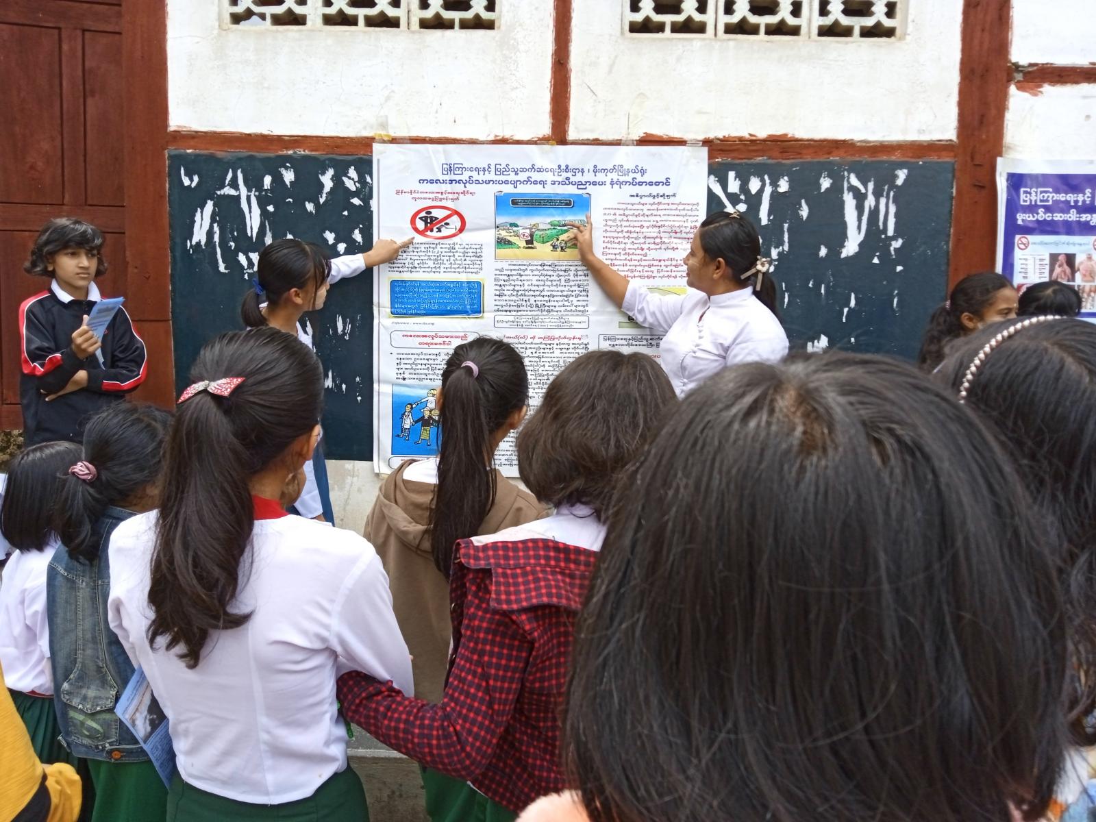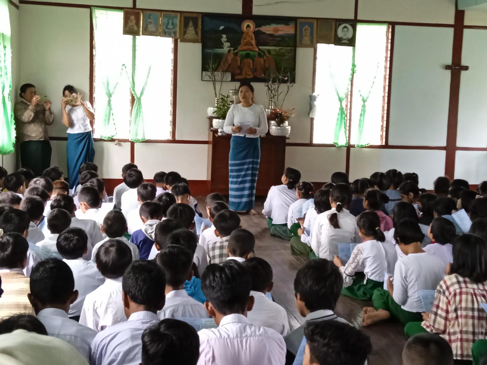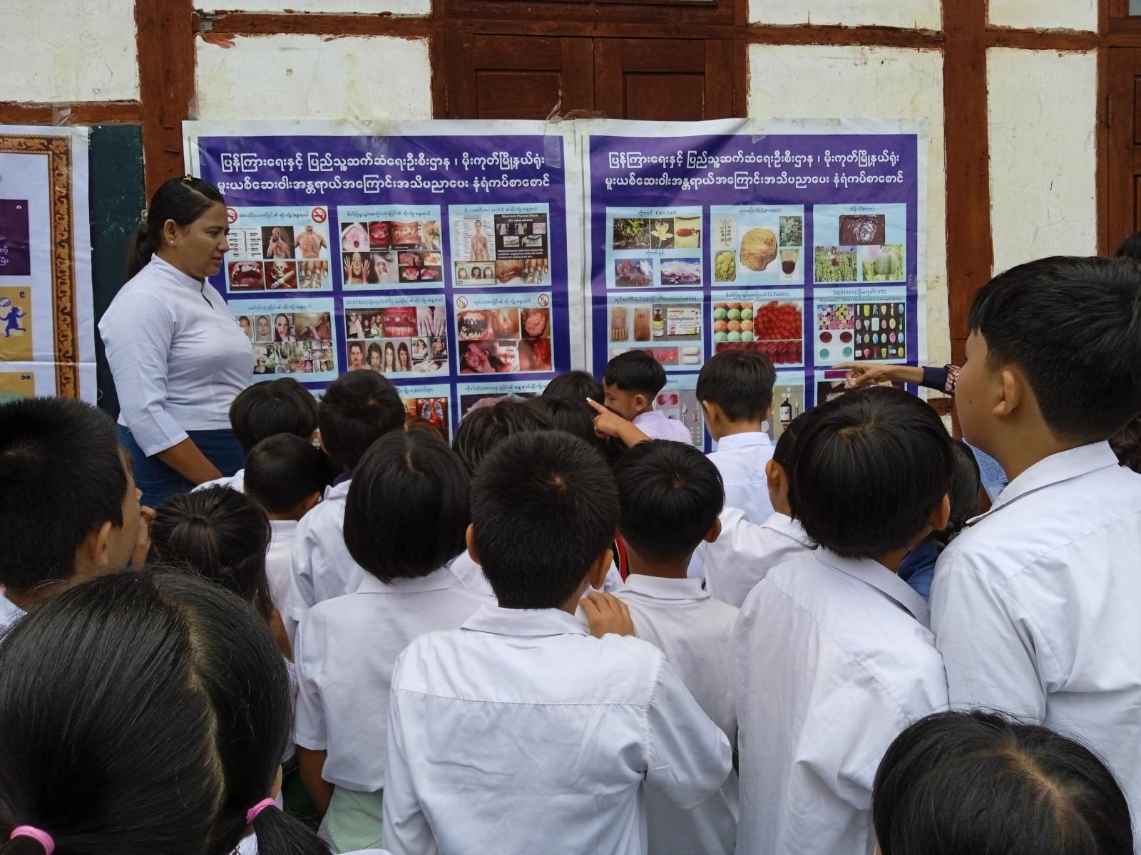 ရှေးဦးစွာ ပြန်ကြားရေးနှင့်ပြည်သူ့ဆက်ဆံရေးဦးစီးဌာန၊ ဦးစီးအရာရှိ ဒေါ်ကြည်ကြည်နွဲ့က ၂၀၂၄ ခုနှစ်၊ အပြည်ပြည်ဆိုင်ရာ မူးယစ်ဆေးဝါးအလွဲသုံးမှုနှင့် တရားမဝင်ရောင်းဝယ်မှုတိုက်ဖျက်ရေးနေ့ အထိမ်းအမှတ်နေ့ဖြစ်ပေါ်လာပုံသမိုင်းကြောင်း၊ မူးယစ်ဆေးဝါးနှင့် စိတ်ကိုပြောင်းလဲစေတတ်သော ဆေးဝါးများနှင့် ဥပဒေများ၊ မူးယစ်ဆေးဝါးသုံးစွဲရခြင်းအကြောင်းတရားများ၊ မူးယစ်ဆေးဝါးသုံးစွဲခြင်းကြောင့် ခံစားရရှိနိုင်သည့် စိတ်ပိုင်းနှင့် ရုပ်ပိုင်းဆိုင်ရာ နောက်ဆက်တွဲဆိုးကျိုးပြဿနာများ၊ မူးယစ်ဆေးဝါးပြတ်တောက်စေနိုင်သည့် နည်းလမ်းများ၊ လူငယ်နှင့်မူးယစ်ဆေးဝါးအန္တရာယ် တားဆီးကာကွယ်ရေးအကြောင်းတို့ကို ရှင်းလင်းဟောပြောခဲ့သည်။ ဆက်လက်ပြီး ပြန်ကြားရေးနှင့်ပြည်သူ့ဆက်ဆံရေးဦးစီးဌာနမှ အပြည်ပြည်ဆိုင်ရာ မူးယစ်ဆေးဝါးအလွဲသုံးစားမှုနှင့် တရားမဝင် ရောင်းဝယ်မှု တိုက်ဖျက်ရေးနေ့အထိမ်းအမှတ် အသိပညာပေးနံရံကပ်စာစောင်များ ပြသခြင်း၊ ကလေးသူငယ်များ စစ်မှုထမ်းခြင်းမှ ကာကွယ်တားဆီးထိန်းသိမ်းရေးဆိုင်ရာ အသိပညာပေးနံရံကပ်စာစောင်များပြသခြင်းနှင့် ကလေးအလုပ်သမားပပျောက်ရေး အသိပညာပေးနံရံကပ်စာစောင်များ ပြသခြင်းနှင့် ပြန်ကြားရေးနှင့်ပြည်သူ့ဆက်ဆံရေးဦးစီးဌာနမှ ဝန်ထမ်းများက အပြည်ပြည်ဆိုင်ရာ မူးယစ်ဆေးဝါးအလွဲသုံးမှုနှင့် တရားမဝင်ရောင်းဝယ်မှုတိုက်ဖျက်ရေးနေ့ အထိမ်းအမှတ်သတင်းစကား လက်ကမ်းစာစောင်များကို ကျောင်းသား/ သူများထံ လက်ဝယ်အရောက် အခမဲ့ဖြန့်ဝေပေးခဲ့ကြောင်း သိရသည်။