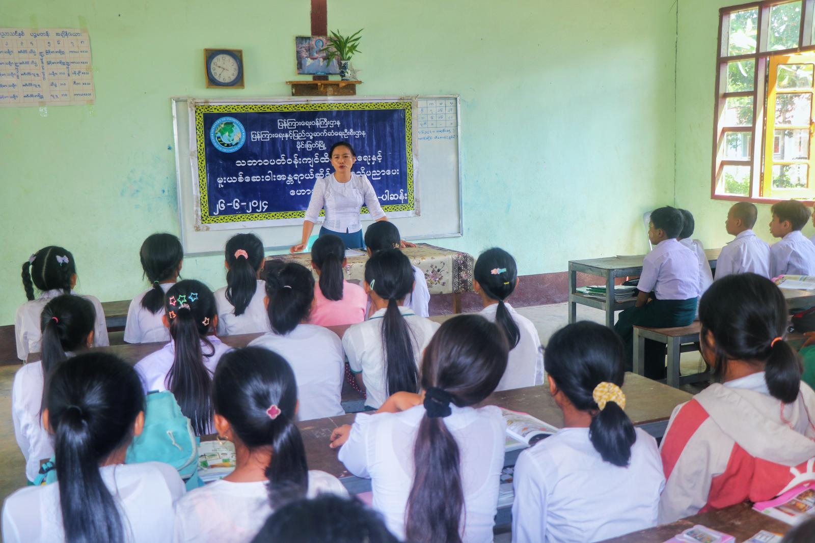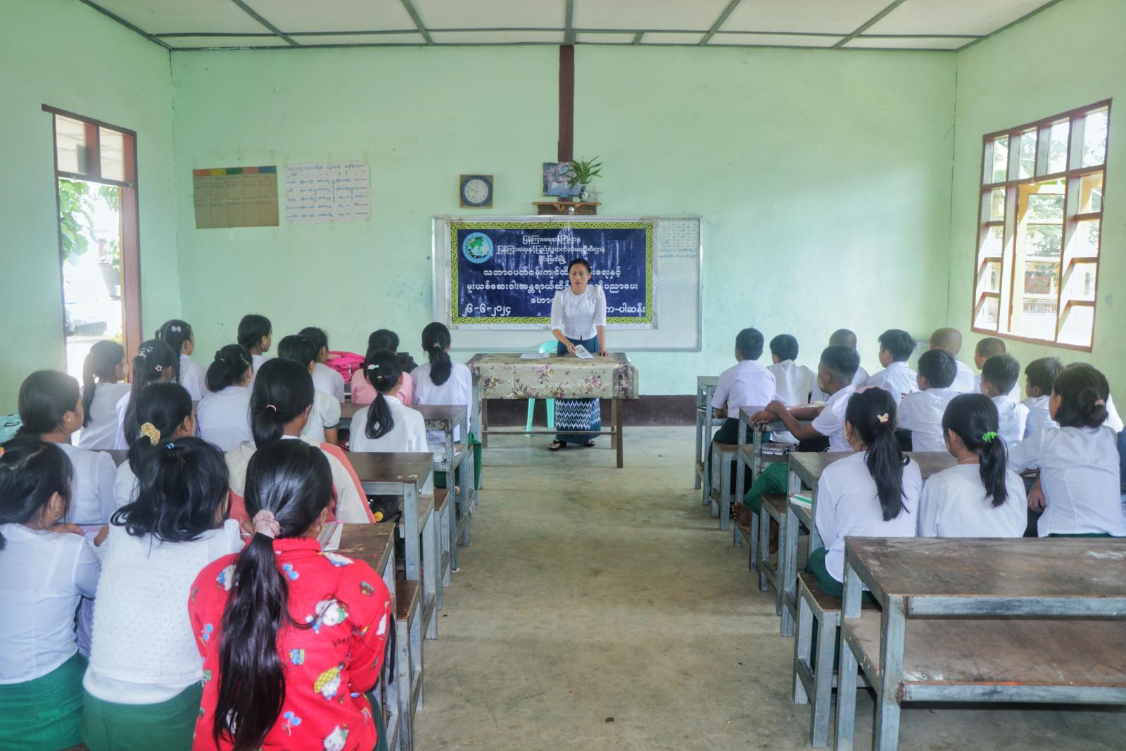 ရှေးဦးစွာ မြို့နယ်ပြန်ကြားရေးနှင့်ပြည်သူ့ဆက်ဆံရေးဦးစီးဌာနမှ ဦးစီးအရာရှိ ဒေါ်အေးဝင်းခိုင်က ဇွန်လ ၂၆ ရက်နေ့သည် အပြည်ပြည်ဆိုင်ရာမူးယစ်ဆေးဝါအလွဲသုံးမှုနှင့် တရားမဝင်ရောင်းဝယ်မှုတိုက်ဖျက်ရေးနေ့ဖြစ်ပုံ၊ မူးယစ်ဆေးဝါအန္တရာယ်သည် ကမ္ဘာတစ်ဝန်းတွင် ကြီးထွားလျက်ရှိကြောင်း၊မူးယစ်ဆေးဝါးသည် လူသားတို့၏ အသက်အန္တရာယ်ကို ဆိုးဝါးစွာထိခိုက်နိုင်သည့်အချက်များနှင့်ကျောင်း သားလူငယ်များ မူးယစ်ဆေး၏ ကျေးကျွန်ဘဝမရောက်အောင် သိရှိလိုက်နာရမည့် အချက်များကို ပညာပေးဟောပြောကြားခဲ့သည်။