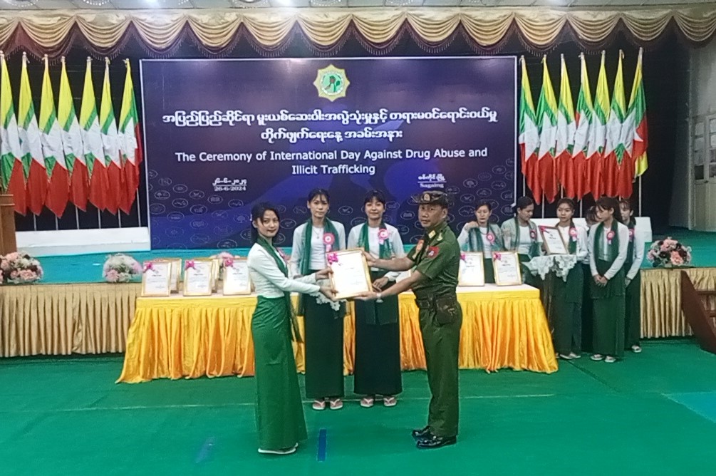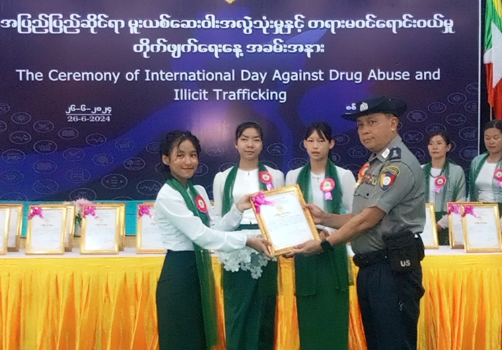 ဆက်လက်၍ စစ်ကိုင်းခရိုင်ကျန်းမာရေးဦးစီးဌာနမှ ဒေါက်တာသော်တာထက်က “မူးယစ်ဆေးဝါးသုံးစွဲခြင်းဖြင့်ရရှိလာသည့် ဆိုးကျိုးများအန္တရာယ်နှင့် မူးယစ်ဆေးစွဲရောဂါ” အကြောင်းကိုဆွေးနွေးပြောကြားပြီး စစ်ကိုင်းတပ်နယ်မှူး၊ တိုင်းဒေသကြီးရဲတပ်ဖွဲ့မှူးရုံးမှ ဒုတိယရဲတပ်ဖွဲ့မှူး ရဲမှူးကြီးစိုးမြင့်၊ ခရိုင်စီမံအုပ်ချုပ်ရေးအဖွဲ့ဥက္ကဋ္ဌနှင့် တာဝန်ရှိသူများက (၃၇)ကြိမ်မြောက် အပြည်ပြည်ဆိုင်ရာမူးယစ်ဆေးဝါးအလွဲသုံးမှုနှင့် တရားမဝင်ရောင်းဝယ်မှုတိုက်ဖျက်ရေးနေ့အထိမ်းအမှတ် စစ်ကိုင်းခရိုင်အဆင့် ပန်းချီ၊ ကာတွန်း၊ ပိုစတာ၊ ကွန်ပျူတာပန်းချီ ပြိုင်ပွဲများတွင် ဆုရရှိကြသည့် အထက်တန်း၊ အလယ်တန်း၊ မူလတန်းအဆင့် ကျောင်းသား/ကျောင်းသူများအား ဆုများအသီးသီးပေးအပ်ခဲ့ကြကြောင်း သိရသည်။