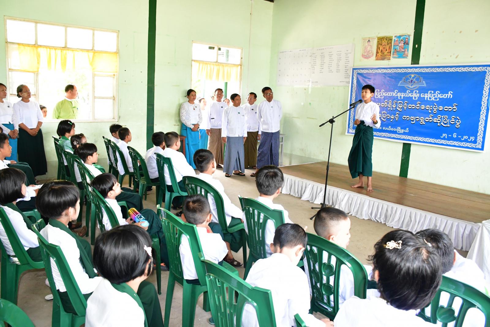 ထို့နောက် မြန်မာနိုင်ငံစာကြည့်တိုက်များ ဖွံ့ဖြိုးတိုးတက်ရေးပူးပေါင်းဆောင်ရွက်မှုကော်မတီ အတွင်းရေးမှူး၊ ပြန်ကြားရေးဝန်ကြီးဌာန ဒုတိယဝန်ကြီး ဦးရဲတင့်က အခြေခံပညာအထက်တန်း ကျောင်း(အေလာ)မှ “အမျိုးသားစာပေယဉ်ကျေးမှုအမွေ "သီချင်းသီဆိုဖျော်ဖြေကြသည့် ကျောင်းသား/ ကျောင်းသူများအား ဂုဏ်ပြုဆုငွေများ ပေးအပ်ချီးမြှင့်သည်။