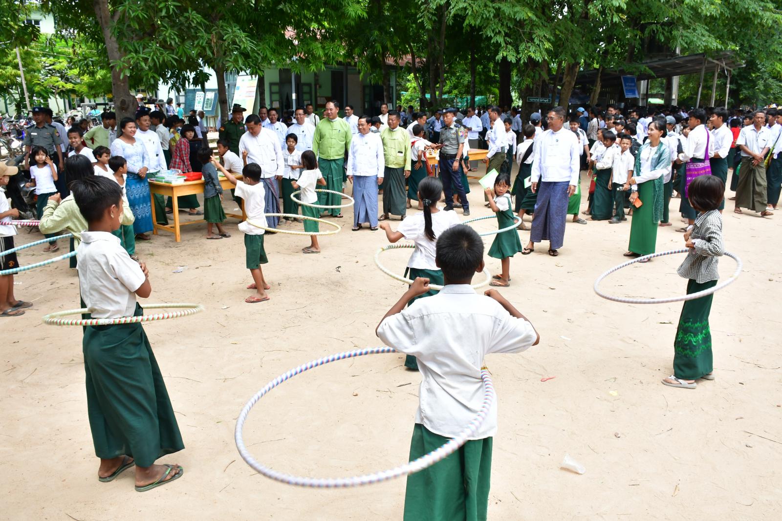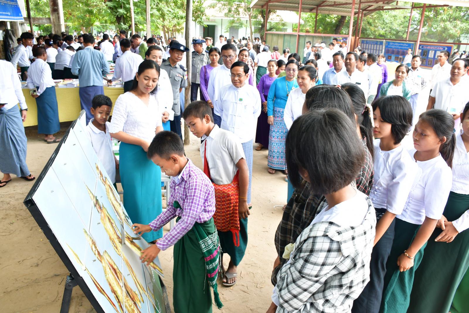 ဦးစွာ အခြေခံပညာအထက်တန်းကျောင်း(အေလာ)မှ ကျောင်းသား/ကျောင်းသူများက “အမျိုးသား စာပေယဉ်ကျေးမှုအမွေ"သီချင်းသီဆို၍ အခမ်းအနားဖွင့်လှစ်ပေးပြီး “ပညာဘဏ်တိုက် စာကြည့်တိုက်သို့သွားကြစို့” ဗီဒီယို Clip ပြသသည်။