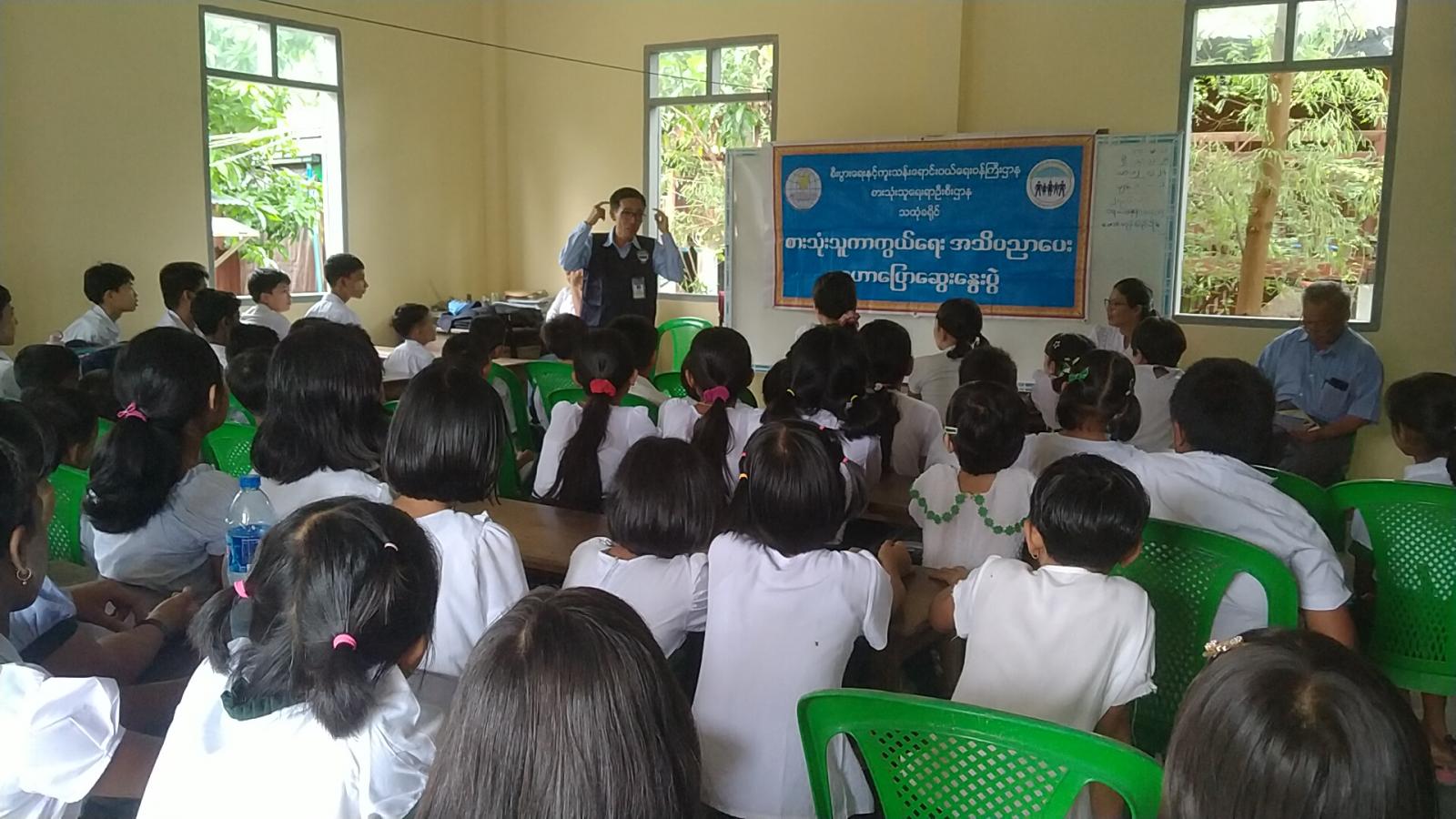 ရှေးဦးစွာ မြို့နယ်စားသုံးသူရေးရာဦးစီးဌာနမှ မြို့နယ်တာဝန်ခံ ဦးအောင်မျိုးဦးက ကျောင်းသား၊ ကျောင်းသူများအနေဖြင့် အစားအသောက်များကို စနစ်တကျ စားသောက်ကြရန်၊ ငရုတ်ဆီနှင့် ခေါက်ဆွဲခြောက်များအပြင်၊ အသင့်စားအသားလုံးကြော်များ၊ ဆိုးဆေးပါသော အစားအစာများ၊ အွန်လိုင်းပေါ်တွင် ရောင်းချနေသော အသားဖြူလိမ်းဆေးများ၊ ပိန်ဆေးများသုံးစွဲပါက ကုန်ညွှန်းအမှတ်အသားပါ/မပါ စီစစ်ခြင်း၊ ကားစီးရာတွင် လည်းသတ်မှတ်ထားသည်ထက်ပို၍ တိုးမြှင့်ကောက်ခံခြင်းကို စားသုံးသူရေးရာဦးစီးဌာနသို့ တိုင်ကြားနိုင်ပါကြောင်း ဟောပြောဆွေးနွေးခဲ့ပါသည်။