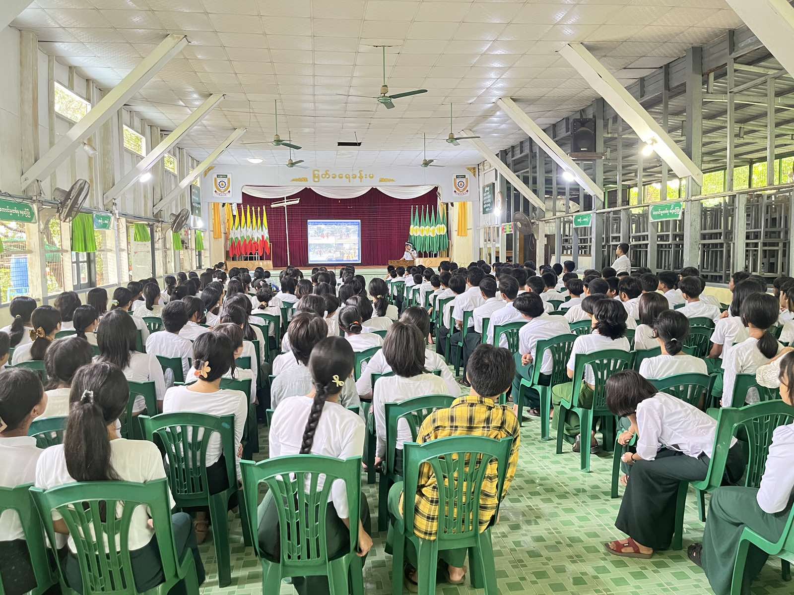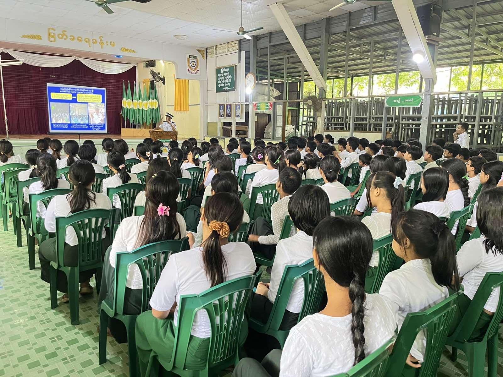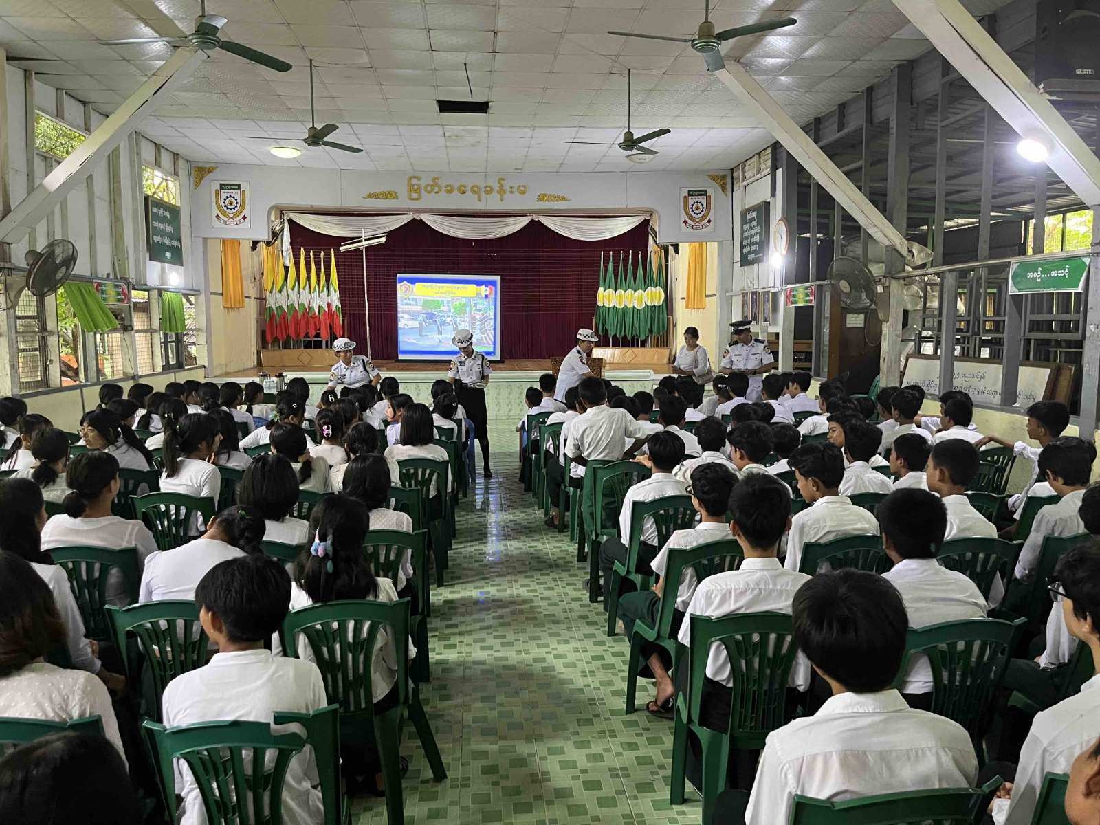 ရန်ကုန်တိုင်းဒေသကြီး၊ မရမ်းကုန်းခရိုင်၊ မြောက်ဥက္ကလာပမြို့နယ်၊ အမှတ်(၁)အခြေခံပညာအထက်တန်းကျောင်း၊ မြတ်ခရေခန်းမတွင် ယာဥ်စည်းကမ်း၊ လမ်းစည်းကမ်းဆိုင်ရာ အသိပညာပေးဟောပြောပွဲနှင့် အသိပညာပေးလက်ကမ်းစာစောင်များဖြန့်ဝေခြင်းကို ယနေ့နံနက် ၉ နာရီခွဲက ယာဥ်ထိန်းတပ်ဖွဲ့စု (၃၅) မှ ဆောင်ရွက်ခဲ့သည်။