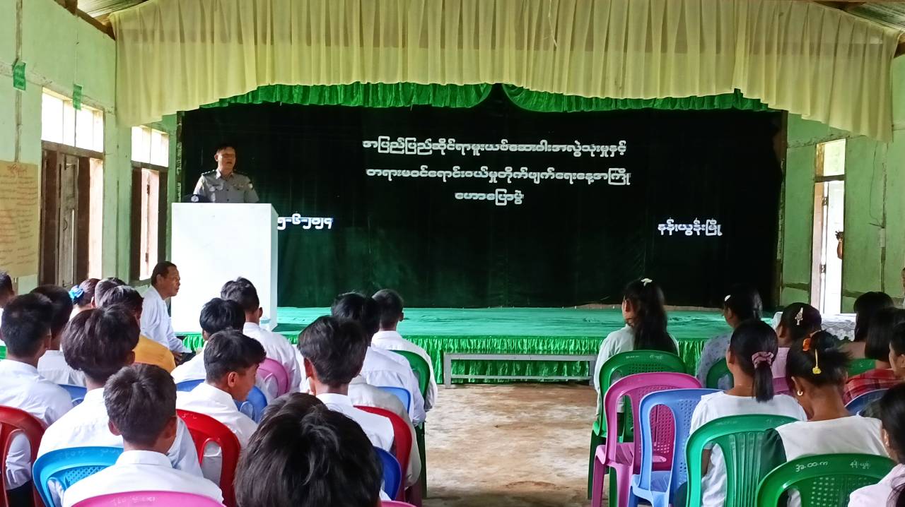 အဆိုပါ ဟောပြောပွဲအခမ်းအနားတွင် မြို့နယ်ပညာရေးမှူး ဦးသက်ဦးကြွယ်၊ မြိုမရဲစခန်းမှူး၊ ဒု-ရဲမှူး ကြယ်တိုး၊ မြို့နယ်ပြန်ကြားရေးနှင့်ပြည်သူ့ဆက်ဆံရေးဦးစီးဌာန၊ ဦးအရာရှိ ဒေါ်စံပယ်ဦးနှင့် ဝန်ထမ်းများ၊ ကျောင်းဆရာ/မများနှင့် ကျောင်းသား/ သူများ(၁၅၀)ဦး တက်ရောက်ကာ ၂၀၂၄ ခုနှစ်၊ ဇွန်လ(၂၀)ရက်နေ့ ပြုလုပ်သည့်(၂၆)ရက်နေ့ကျရောက်မည့် အပြည်ပြည်ဆိုင်ရာမူးယစ်ဆေးဝါးအလွဲသုံးမှုနှင့် တရာမဝင်ရောင်းဝယ်မှုတိုက်ဖျက်ရေးနေ့အကြို စာစီစာကုံးပြိုင်ပွဲတွင် ယှဉ်ပြိုင်ဆုရရှိသူ အလယ်တန်းအဆင့်၊ အထက်တန်းအဆင့် ပထမ၊ ဒုတိယ၊ တတိယဆုရ ကျောင်းသား/သူများအား သက်ဆိုင်ရာတာဝန်ရှိသူတို့က ဆုအသီးသီးချီးမြှင့်ပေးခဲ့ကြောင်း သိရသည်။
