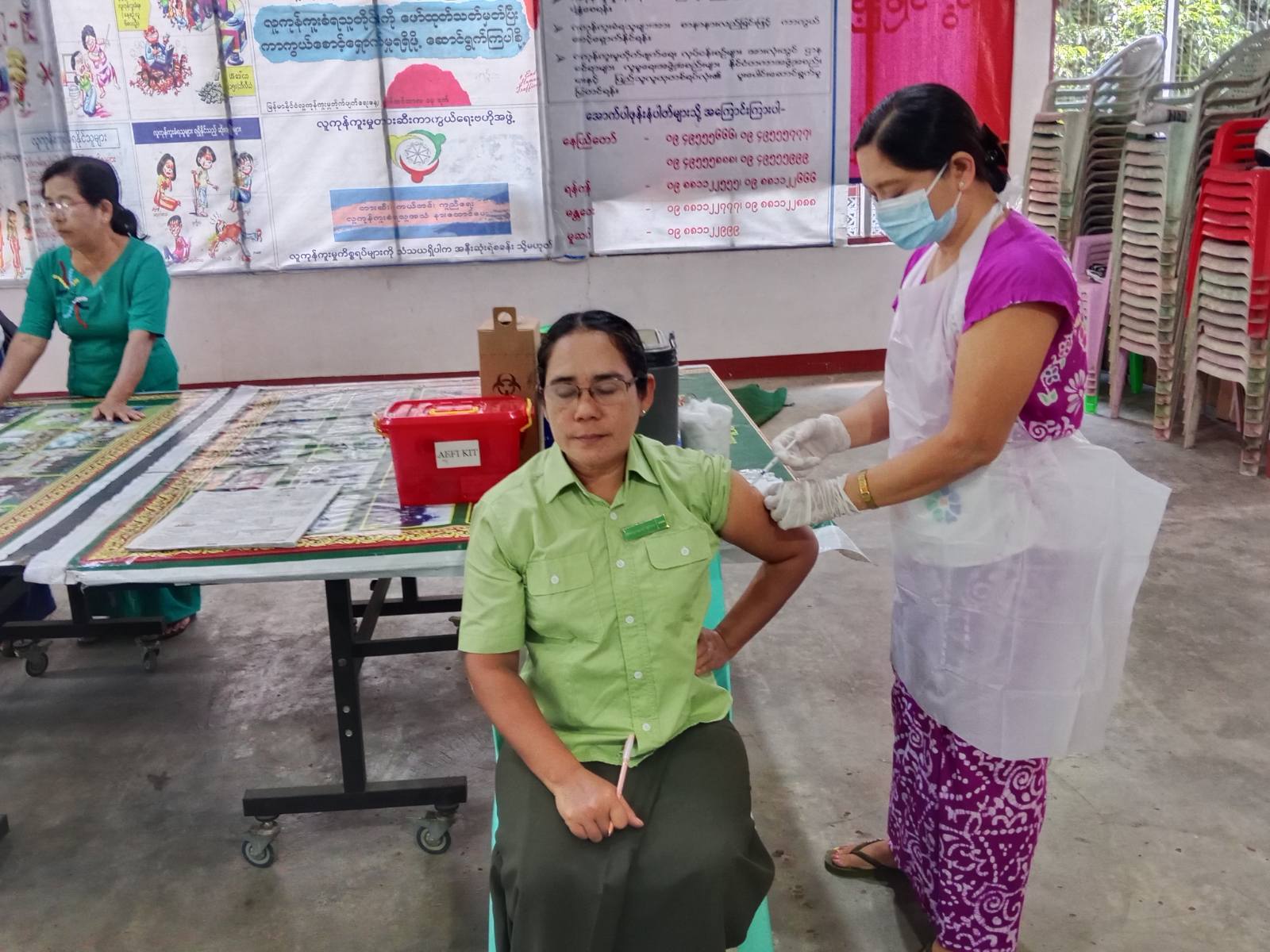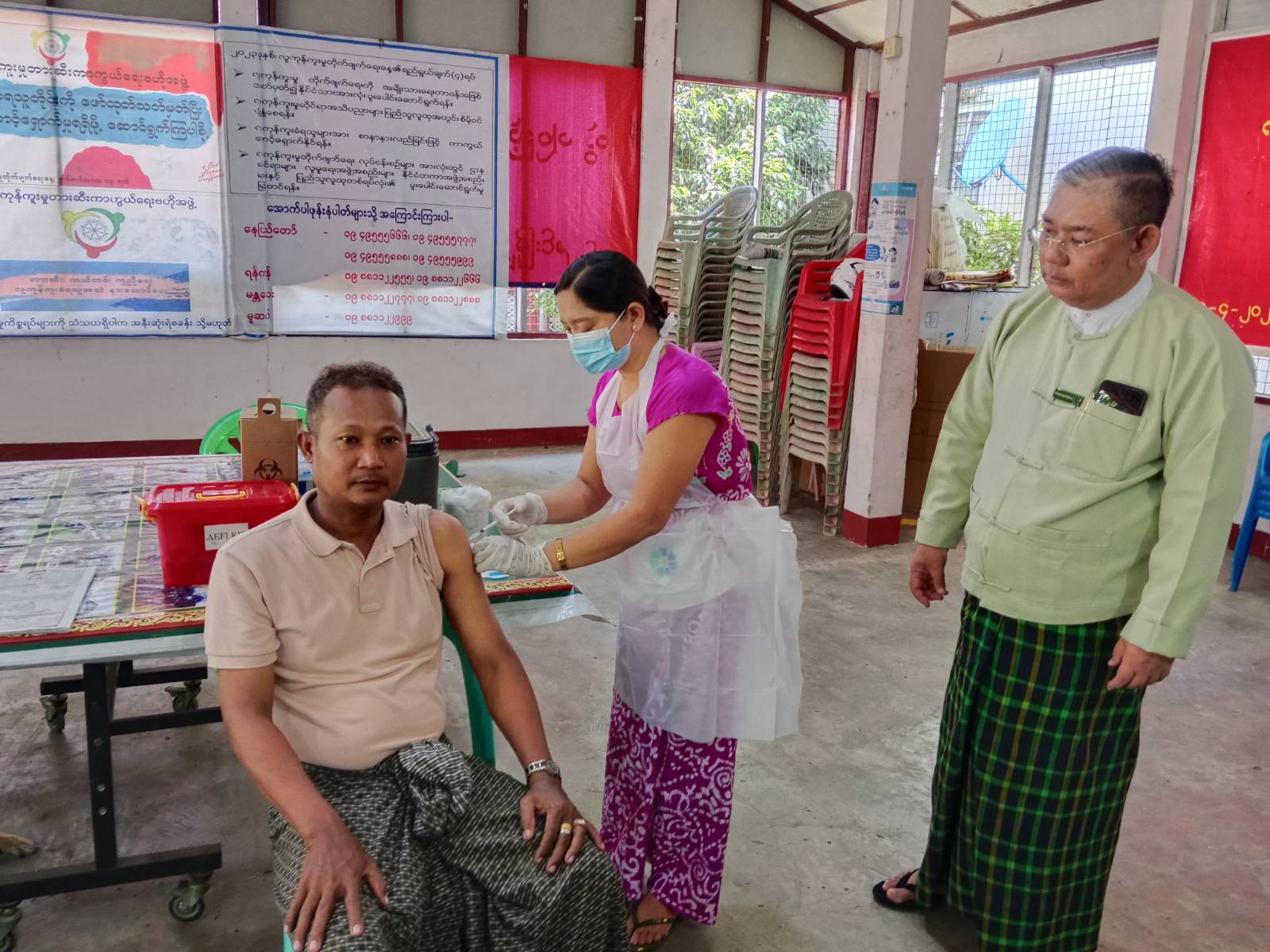 အဆိုပါကာကွယ်ဆေးထိုးနှံပေးရာတွင် သရက်ချောင်းမြို့နယ်၊ စီမံအုပ်ချုပ်ရေးအဖွဲ့ဥက္ကဋ္ဌ ဦးမိုးထွေးဦး၊ မြို့နယ်အထွေထွေအုပ်ချုပ်ရေးဦးစီးဌာန ဒုတိယမြို့နယ်အုပ်ချုပ်ရေးမှူး ဦးကျော်ဇင်နှင့် တာဝန်ရှိသူများက လိုအပ်သည်များကို ဝိုင်းဝန်းပူးပေါင်း ကူညီဆောင်ရွက်ပေးခဲ့ကြောင်း သိရသည်။