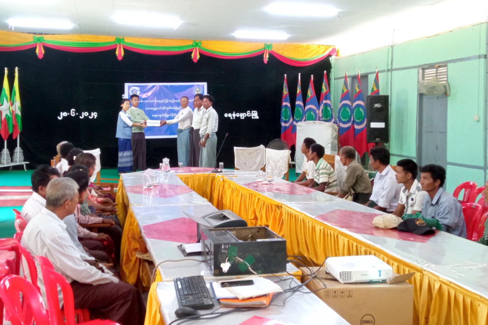 မကွေးတိုင်းဒေသကြီး၊ ချောက်ခရိုင်၊ ရေနံချောင်းမြို့နယ်၌ ဧရာဝတီမြစ်ရေတိုက်စားပြီး ကမ်းပြိုဘေးအန္တရာယ်ကျရောက်နိုင်သည့် မာန်မြေကျေးရွာအုပ်စုအတွင်းရှိ ကျေးရွာ(၄)ရွာမှ ကြိုတင်ပြောင်းရွေ့ခဲ့သည့် အိမ်ခြေ (၆၃)လုံးနှင့် အိမ်ထောင်စုဝင်များအား အိမ်ဆောက်ပစ္စည်းဖိုးနှင့် ဆန်ရိက္ခာဖိုးထောက်ပံ့ငွေများပေးအပ်ပွဲ အခမ်းအနားကို ယမန်နေ့မွန်းလွဲ ၁ နာရီခွဲက မြို့နယ်အထွေထွေအုပ်ချုပ်ရေးဦးစီးဌာန အစည်းအဝေးခန်းမ၌ ကျင်းပသည်။