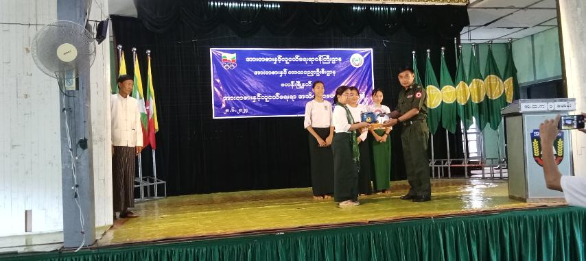 ထို့နောက် မြို့နယ်စီမံအုပ်ချုပ်ရေးအဖွဲ့ အဖွဲ့၀င်(၁) ဗိုလ်မှူးမျိုးခိုင်က အားကစားပစ္စည်းများကို အဆိုပါကျောင်းသို့ ပေးအပ်လှူဒါန်းခဲ့ပြီး အဖွဲ့ဝင်(၂) ဦးစိန်မြင့်က သရုပ်ပြအဖွဲ့အား ဂုဏ်ပြုဆုငွေများပေးအပ်လှူဒါန်း၍ အားကစားနှင့်ကာယပညာဦးစီးဌာနက Fitness Dance အားကစားနည်းဖြင့် သရုပ်ပြသခြင်းများ ဆောင်ရွက်ခဲ့ပါကြောင်း သတင်းရရှိပါသည်။