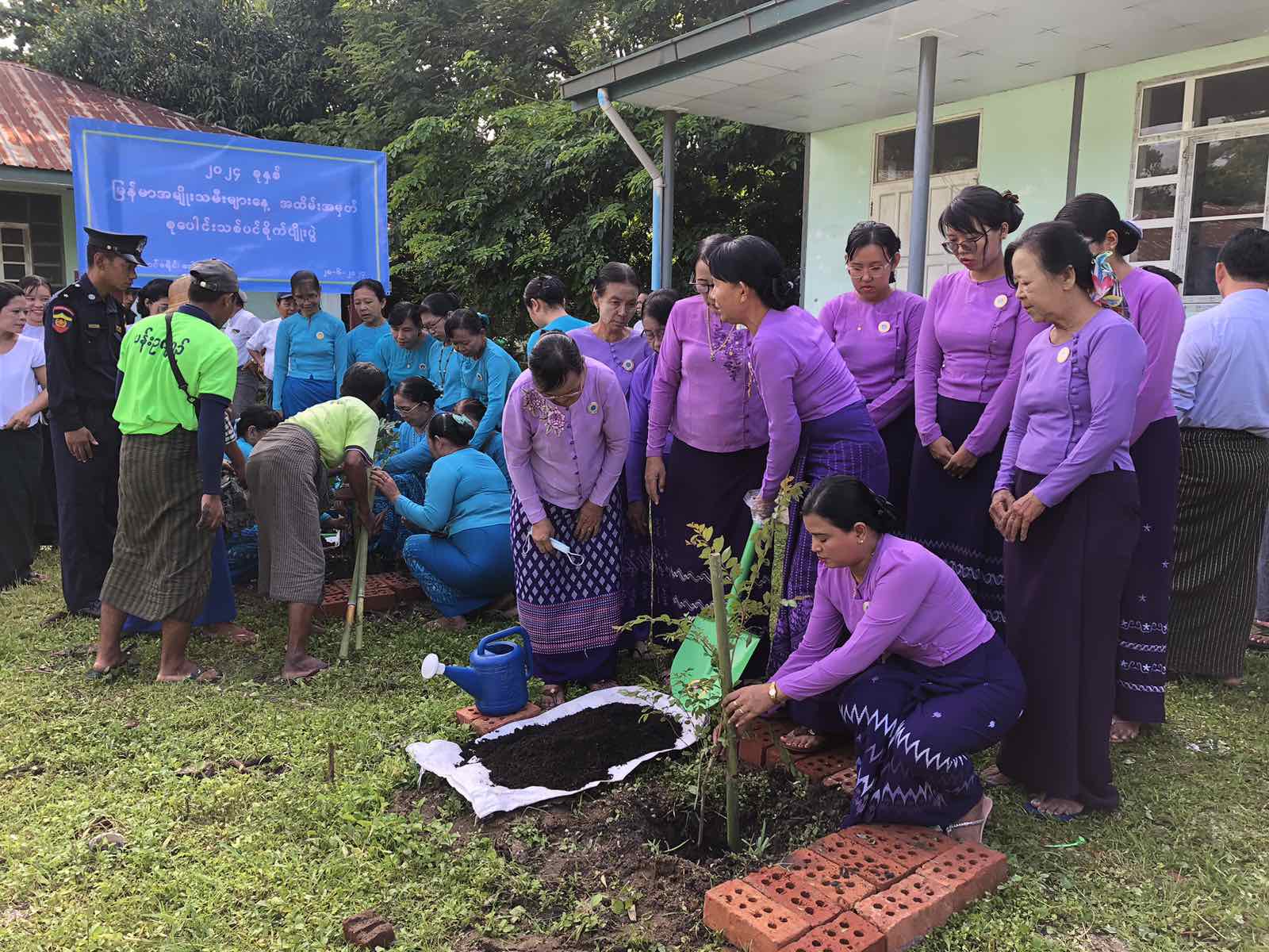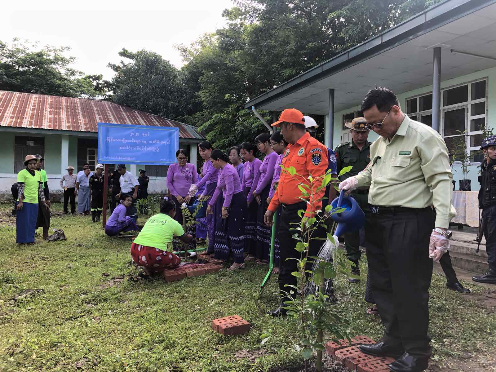 အဆိုပါ အခမ်းအနားတွင် ဗိုလ်တထောင်ခရိုင် စီမံအုပ်ချုပ်ရေးအဖွဲ့ ဥက္ကဋ္ဌ ဦးအောင်လွင်က စိုက်ပျိုးမည့် ပျိုးပင်များအား ပေးအပ်ခဲ့ရာ ဗိုလ်ထထောင်ခရိုင်၊ အမျိုးသမီးရေးရာအဖွဲ့ ဥက္ကဋ္ဌနှင့်အဖွဲ့ဝင်များက လည်းကောင်း၊ မြို့နယ် မိခင်နှင့်ကလေးစောင့်ရှောက်ရေးအဖွဲ့ ဥက္ကဋ္ဌနှင့်အဖွဲ့ဝင်များကလည်းကောင်း အသီးသီးလက်ခံရယူခဲ့ကြပါသည်။ ဆက်လက်၍ ဒေါပုံမြို့နယ်စီမံအုပ်ချုပ်ရေးအဖွဲ့ဥက္ကဋ္ဌ ဦးသက်မင်းအေးက ပျိုးပင်များအား မြို့နယ်စည်ပင်သာယာအုပ်ချုပ်ရေးမှူးထံ ပေးအပ်ခဲ့ပါသည်။ ထို့နောက် ဗိုလ်တထောင်ခရိုင်၊ စီမံအုပ်ချုပ်ရေးအဖွဲ့ဥက္ကဋ္ဌနှင့် အဖွဲ့ဝင်များ၊ ဒေါပုံမြို့နယ်စီမံအုပ်ချုပ်ရေးအဖွဲ့ဥက္ကဋ္ဌနှင့် အဖွဲ့ဝင်များ၊ မြို့နယ်အဆင့်ဌာနဆိုင်ရာ တာဝန်ရှိသူများ၊ ခရိုင်နှင့် မြို့နယ်အမျိုးသမီးရေးရာအဖွဲ့ဝင်များ၊ မြို့နယ်မိခင်နှင့်ကလေး စောင့်ရှောက်ရေးအဖွဲ့ဝင်များ၊ အသင်းအဖွဲ့များမှ တာဝန်ရှိသူများနှင့် ရပ်ကွက်အုပ်ချုပ်ရေးမှူးများက စုပေါင်း၍ ကျောင်းအတွင်း အရိပ်ရအပင်များကို စုပေါင်းစိုက်ပျိုးခဲ့ကြောင်း သိရသည်။