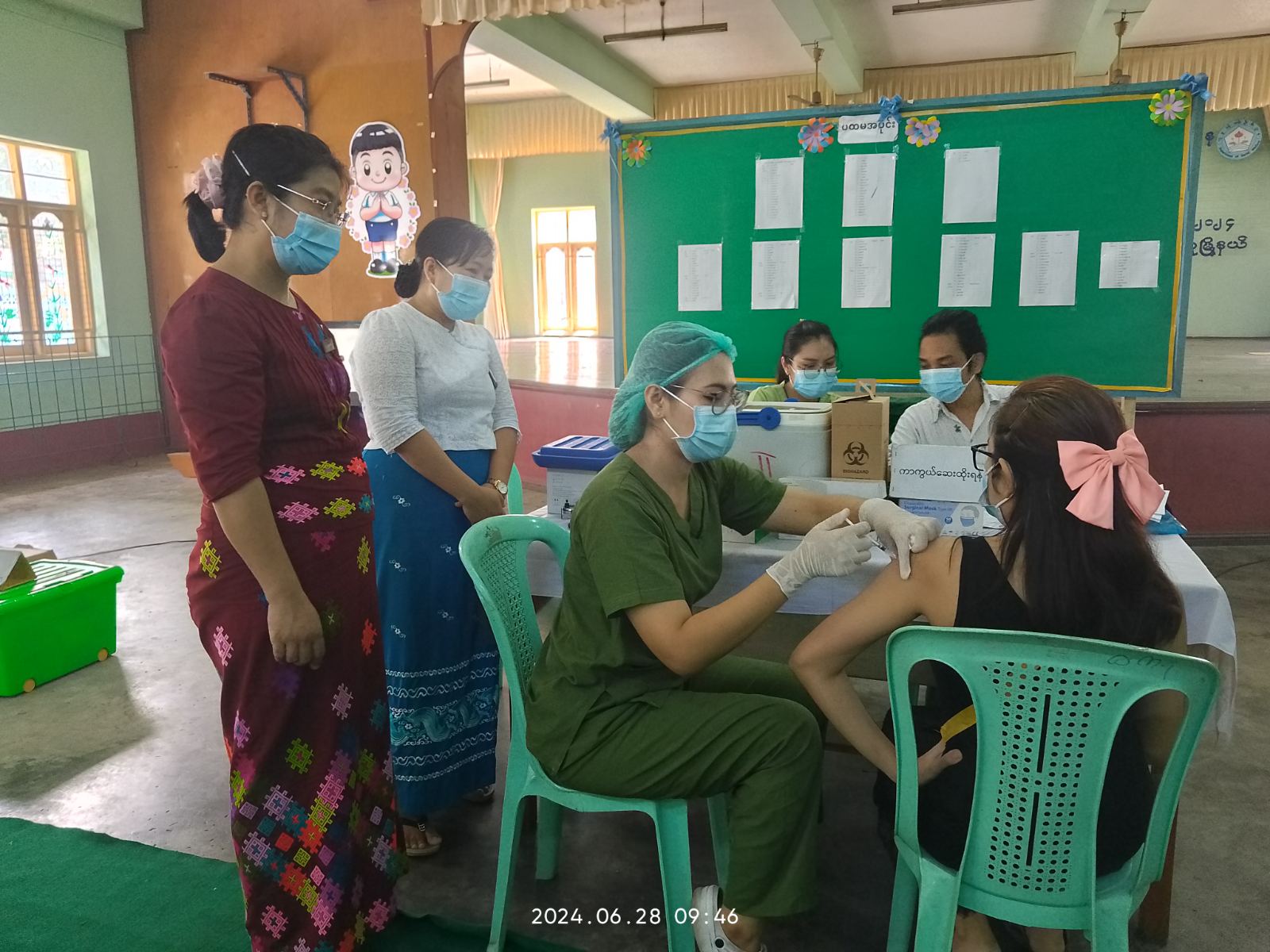 အဆိုပါကာကွယ်ဆေးကာကွယ်ဆေးထိုးနှံပေးရာတွင် ဆေးမထိုးမီ ကျန်းမာရေးစစ်ဆေးခြင်း ၊ကိုယ်အပူချိန်တိုင်းတာခြင်း၊ ကျန်းမာရေးဝန်ကြီးဌာန၏ လမ်းညွန်ချက်များနှင့်အညီ ကျန်းမာရေးဝန်ထမ်းများက ကာကွယ်ဆေးများကို ထိုးနှံပေးလျက်ရှိပြီး ကာကွယ်ဆေးထိုးနှံရာတွင် မလိုလားအပ်သောပြဿနာတစ်စုံတစ်ရာ မဖြစ်ပေါ်စေရေးအတွက် မြို့နယ် စီမံအုပ်ချုပ်ရေးအဖွဲ့ဝင်များက ကြီးကြပ်၍ မြို့နယ်ကျန်းမာရေးဦးစီးဌာနမှူး ဒေါက်တာ သဇင်ခိုင်နှင့်ဝန်ထမ်းများက ဆောင်ရွက်ပေးလျက်ရှိကြောင်း သိရှိရသည်။