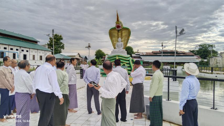 ထိုသို့ကြည့်ရှုစစ်ဆေးရာတွင် ပန်းတောင်းမြို့နယ်၊ ဒေါင်းမြတ်နားကျေးရွာအုပ်စု၊ ကြာအင်းကျေးရွာလမ်းထိပ်၊ပြည်-တောင်ကုတ်ကားလမ်းဘေးရှိ တောင်သူ ဦးခင်ဦး၏ ပဲစင်းငုံစိုက်ပျိုးမည့်နေရာအားလည်းကောင်း၊ ငါးဆယ်ပေးအုပ်စု၊ အုတ်ဖိုကျေးရွာရှိ စပါးစိုက်ပျိုးခင်းအားလည်းကောင်း၊ မကြီးထုံးကျေးရွာရှိ စပါးစိုက်ပျိုးခင်းအားလည်းကောင်း၊ ဖောင်းကန်ရပ်ကွက်၊ ဧရာဝတီမြစ်ကမ်းဘေးရှိ ရေကာတာ ဆောက်လုပ်မည့်နေရာအားလည်းကောင်း ကြည့်ရှုစစ်ဆေး၍ လိုအပ်သည်များ လမ်းညွှန်မှာကြားခဲ့ပြီး ဝန်လိုရပ်ကွက်ရှိ သမိုင်းဝင်ပေါ်တော်မူ ရှင်ဖြူမြတ်စွာ ဘုရားကြီးအားလှည့်လည်ကြည်ညိုဖူးမြှော်ကာ ပြန်လည်ထွက်ခွာခဲ့ကြောင်း သိရသည်။