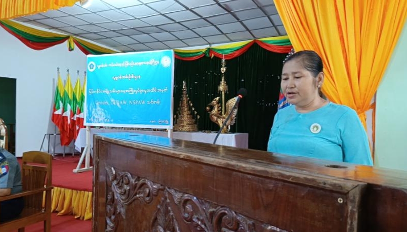 ရှေးဦးစွာ မြို့နယ်စီမံအုပ်ချုပ်ရေးအဖွဲ့ဥက္ကဋ္ဌ ဦးသိန်းတန်က အဖွင့်အမှာစကား ပြောကြားပြီး၊ အတွင်းရေးမှူးရဲမှူး ကြည်စိုးက အမှာစကား ပြောကြားပြီးနောက်၊ မြို့နယ်အမျိုးသမီးရေးရာအဖွဲ့ဥက္ကဋ္ဌ ဒေါ်စန်းစန်းမြင့်က မြန်မာ့အမျိုးသမီးများ၏ လူမှုလုပ်ငန်းဆောင်ရွက်ချက်နှင့် စွမ်းဆောင်မှုဆိုင်ရာများကို ပြောကြားပါသည်။