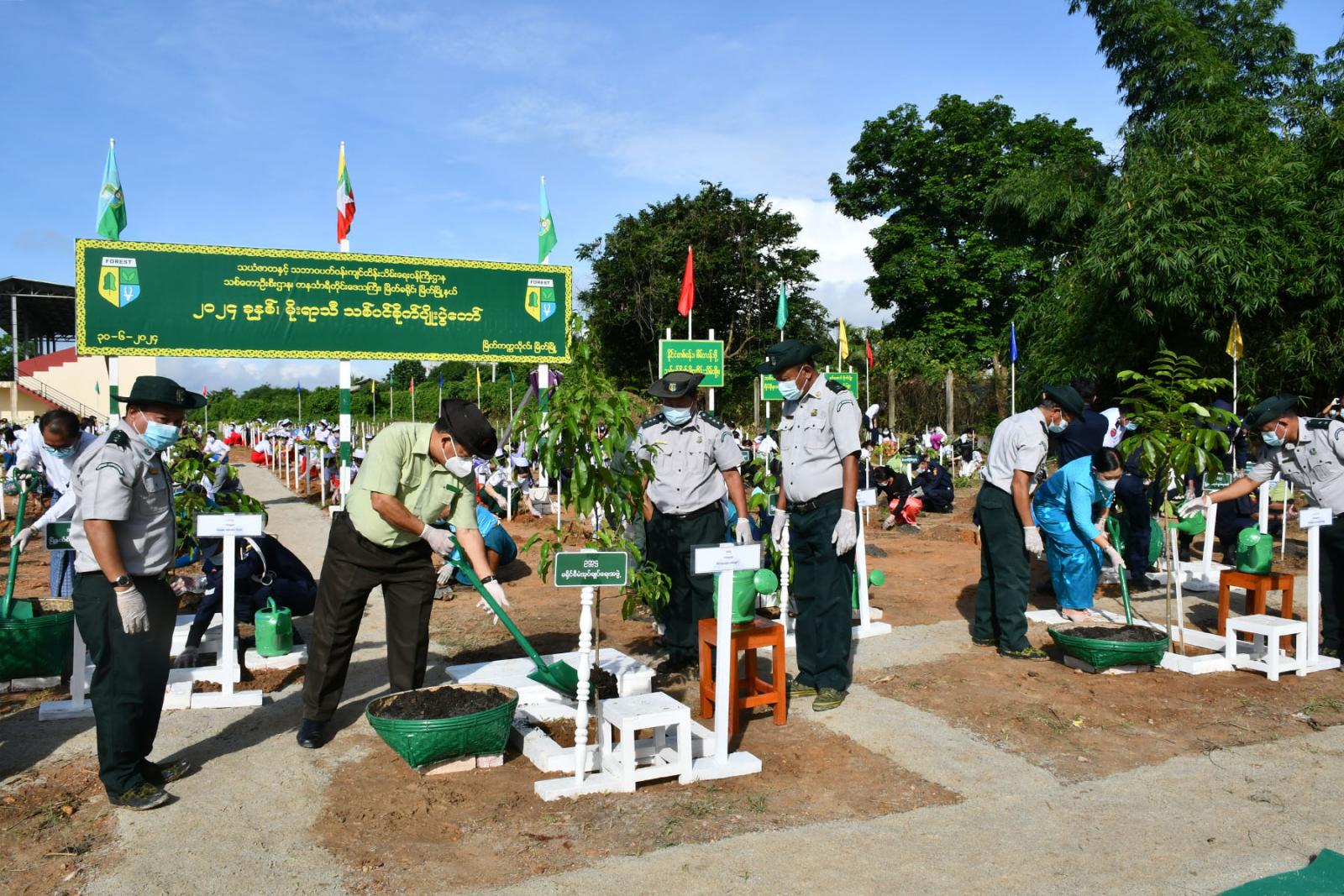 သစ်ပင်စိုက်ပျိုးပွဲတွင် ပျဉ်းကတိုး(၁၀၀)ပင်၊ မဟော်ဂနီ(၉၈)ပင်၊ ခရေ(၁၇၀)ပင်၊ ကံ့ကော် (၃၅)ပင်၊ ပိတောက်(၂)ပင်၊ စိန်းပန်း(၅၀)ပင်၊ ငုရွှေဝါ(၅၀)ပင်နှင့် မန်ဂျန်ရှား(၁၀၀)ပင် စုစုပေါင်း ပျိုးပင်(၆၀၅)ပင်ကို သစ်ပင်စိုက်ပျိုးပွဲ တက်ရောက်လာကြသူများက တပျော်တပါး စုပေါင်းစိုက်ပျိုးပေးခဲ့ကြကြောင်း သိရသည်။