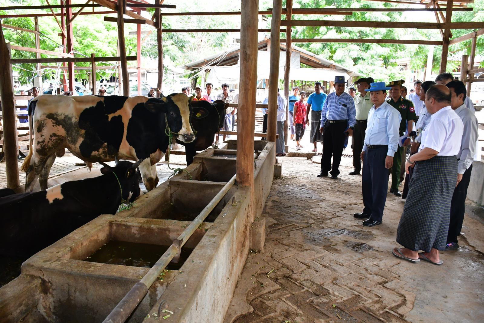 ထို့နောက် နေပြည်တော်မွေးမြူရေးနှင့်ကုသရေးဦးစီးဌာနမှ တိုင်းဦးစီးမှူးက ကံကြီးမွေးမြူရေးဇုန်တွင် မွေးမြူရေးလုပ်ငန်းများ ဆောင်ရွက်ထားရှိမှုအခြေအနေနှင့် ဆက်လက်မွေးမြူမည့် အခြေအနေများကိုလည်ကောင်း၊ မွေးမြူရေးလုပ်ငန်းရှင်များက လက်ရှိနို့စားနွားများ မွေးမြူထားရှိမှုအခြေအနေများ၊ ဆက်လက်တိုးချဲ့မွေးမြူမည့် လုပ်ငန်းစဉ်များကိုလည်းကောင်း ရှင်းလင်းတင်ပြကြရာ နေပြည်တော်ကောင်စီဥက္ကဋ္ဌ ဦးသန်းထွန်းဦးက လိုအပ်သည်များကို ပေါင်းစပ်ဆောင်ရွက်ပေးပြီး (ဖန်ဟွ)နို့စားနွားမွေးမြူရေးခြံတွင် နိုးစားနွားများမွေးမြူထားရှိမှု အခြေအနေများကို လှည့်လည်ကြည့်ရှုအားပေးသည်။