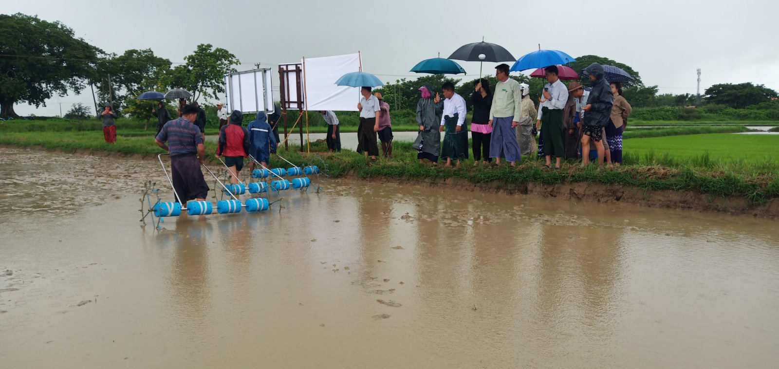 စပါးမျိုးစေ့ချကိရိယာ(Seeder)ဖြင့် လက်တွေ့အစေ့ချစိုက်ပျိုးပြသခြင်းကို ကော့ထင်းကျေးရွာအုပ်စု၊ ကွင်းအမှတ် (၁၂၅)၊ ဦးပိုင်အမှတ်(၇၂/၁-က )၌ပြုလုပ်ရာ မြို့နယ်စီမံအုပ်ချုပ်ရေးအဖွဲ့ဥက္ကဋ္ဌ ဦးတင့်လွင်နှင့် အဖွဲ့ဝင်များ၊ မြို့နယ်စက်မှုလယ်ယာဦးစီးဌာနမှူး ဦးထွန်းထွန်းဝင်း၊ မြို့နယ်စိုက်ပျိုးရေးဦးစီးဌာနမှူး ဦးဝင်းဗိုလ်၊ မြို့နယ်ကြေးတိုင်နှင့်မြေစာရင်းဦးစီးဌာနမှူး ဦးဇော်ဇော်နှင့် တာဝန်ရှိသူတို့က ကြည့်ရှုအားပေးကာ ရှစ်တန်းသွား မျိုးစေ့ချကိရိယာဖြင့် မျိုးစေ့ချစိုက်ပျိုးရာ၌ရရှိမည့် အကျိုးကျေးဇူးများ၊ လိုအပ်သည့် နည်းပညာပံ့ပိုးပေးနိုင်မှုများကို ရှင်းလင်းပြောကြားပြီး လိုအပ်သည်တို့ကို ပေါင်းစပ်ညှိနှိုင်း ဆောင်ရွက်ပေးခဲ့ကြသည်။