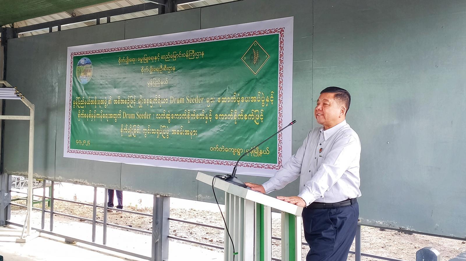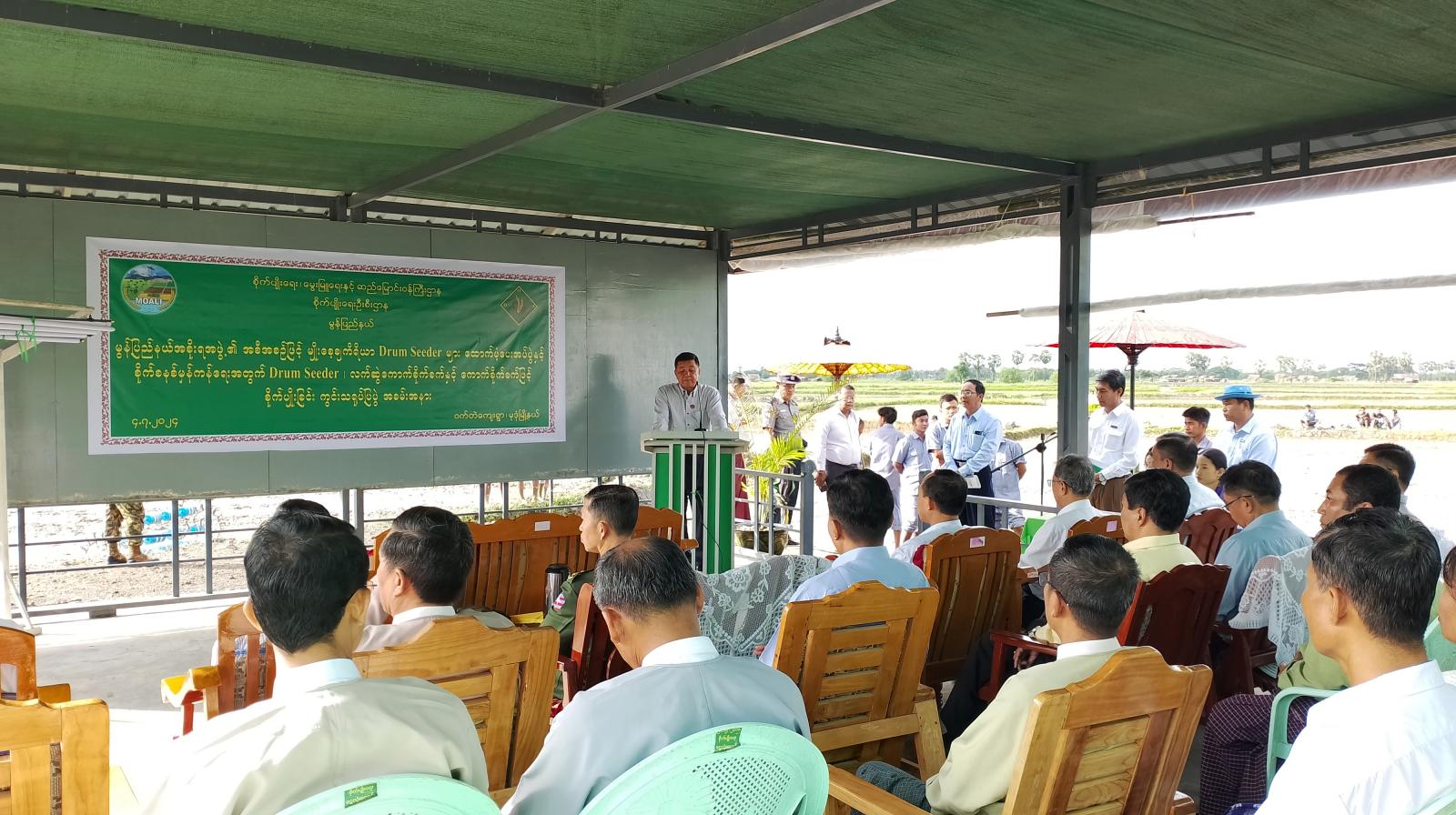 ဦးစွာ ပြည်နယ်ဝန်ကြီးချုပ်က ကြဲခင်းစနစ်စိုက်ပျိုးခြင်းထက် စက်ကိရိယာများ ပိုမိုအသုံးပြုစိုက်ပျိုးနိုင်ရန်၊ တောင်သူများ မျိုးစေ့ကုန်ကျမှုသက်သာပြီး အလေအလွင့်မရှိစေရန်နှင့် အချိန်လုပ်အားခလျော့ချနိုင်ရန် ပြည်နယ်အစိုးရအနေဖြင့် ပြည်နယ်တစ်ခုလုံးအတွက် တိုက်ရိုက်မျိုးစေ့ချကိရိယာ Seeder (၅၈၀)လက်ကို ထောက်ပံ့ပေးအပ်ခဲ့ရာ မုဒုံမြို့နယ်အနေဖြင့် (၆၀)လက်ကို တောင်သူများထံ ထောက်ပံ့ပေးအပ်မည်ဖြစ်ကြောင်း၊ ကောက်စိုက်စက်ကို အသုံးပြုခြင်းအားဖြင့် ပျိုးပင်များအတန်းလိုက်စိုက်ပျိုးနိုင်သည့်အတွက် လေဝင်လေထွက်ကောင်းမွန်ကာ အမြစ်ပွားနှုန်းကောင်းမွန်စေခြင်း အပင်ပြုစုချိန်မှ ရိတ်သိမ်းချိန်အထိ စိုက်ပျိုးလွယ်ကူစေပြီး ကုန်ကျစရိတ်သက်သာ၍ အထွက်နှုန်းကောင်းမွန်ကြောင်း၊ ပြည်နယ်အတွင်း စိုက်ပျိုးရေးကဏ္ဍဖွံ့ဖြိုးတိုးတက်စေရေး သီးနှံအထွက်နှုန်း အရည်အသွေးကောင်းမွန်သည့် ထုတ်ကုန်များထုတ်လုပ်နိုင်စေခြင်းဖြင့် တောင်သူများဝင်ငွေတိုးစေရန်အတွက် တာဝန်ရှိသူများမှ အဘက်ဘက်က ဖြည့်ဆည်းဆောင်ရွက်ပေးလျက်ရှိသလို တောင်သူများမှလည်း အင်တိုက်အားတိုက်ကြိုးစားဆောင်ရွက်ပေးစေလိုကြောင်း အမှာစကား ပြောကြားသည်။