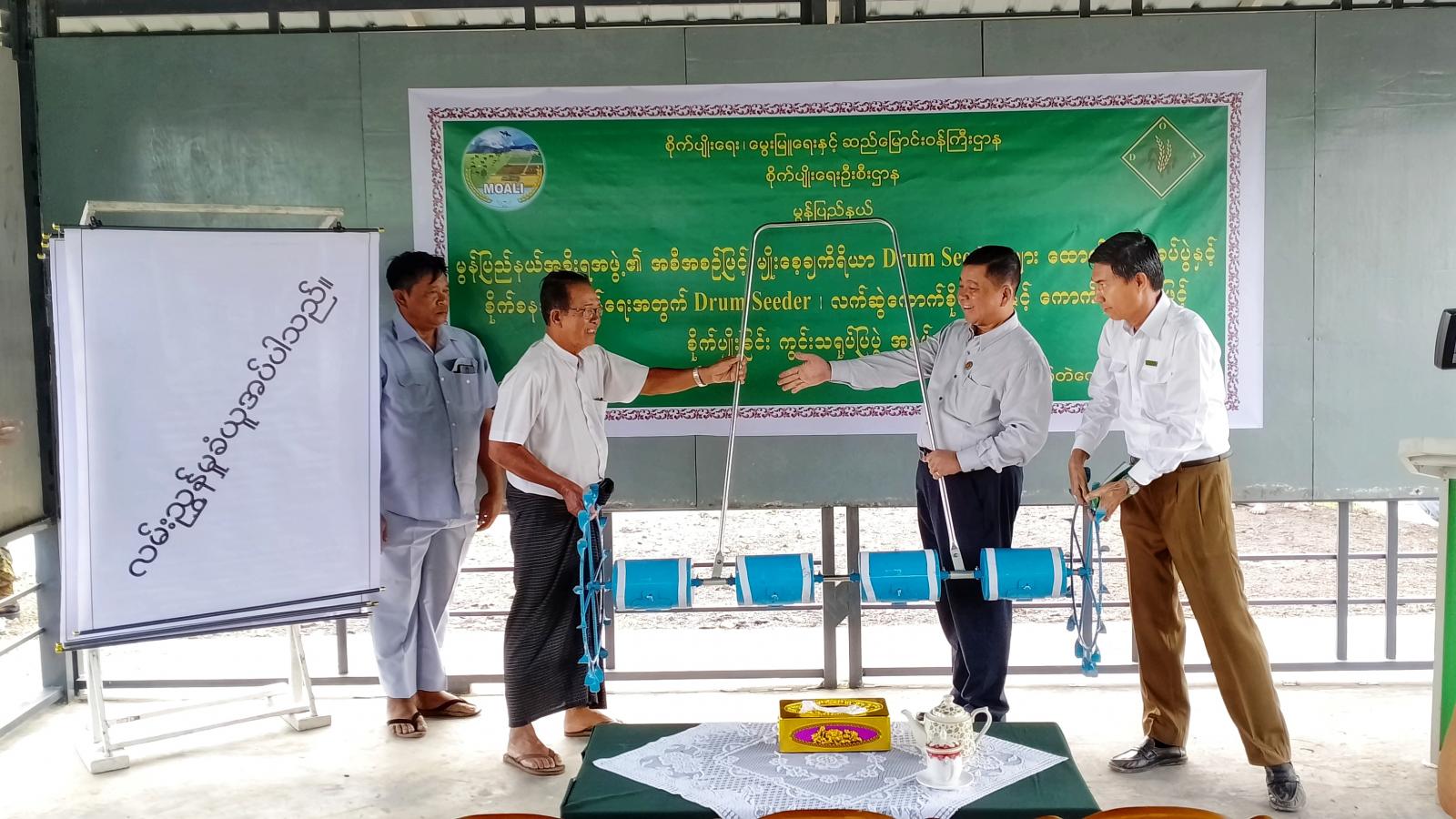 မွန်ပြည်နယ်၊ မုဒုံမြို့နယ်တွင် ပြည်နယ်အစိုးရအဖွဲ့၏အစီအစဥ်ဖြင့် မျိုးစေ့ချကိရိယာ Drum Seeder များ ထောက်ပံ့ပေးအပ်ခြင်း၊ မိုးစပါးများစိုက်စနစ်မှန်ကန်ရေးအတွက် Drum Seeder လက်ဆွဲကောက်စိုက်စက်နှင့် ကောက်စိုက်စက်များဖြင့် စိုက်ပျိုးခြင်း ကွင်းသရုပ်ပြပွဲကို ယနေ့နံနက် ၈ နာရီက ဝက်တဲကျေးရွာရှိ ကွင်းအမှတ် ၈၅၄ တောင်သူကွင်း၌ကျင်းပရာ မွန်ပြည်နယ်ဝန်ကြီးချုပ်ဦးအောင်ကြည်သိန်း၊ ပြည်နယ်အစိုးရအဖွဲ့ဝင်ဝန်ကြီးများ၊ တာဝန်ရှိသူများနှင့် တောင်သူများတက်ရောက်ခဲ့သည်။