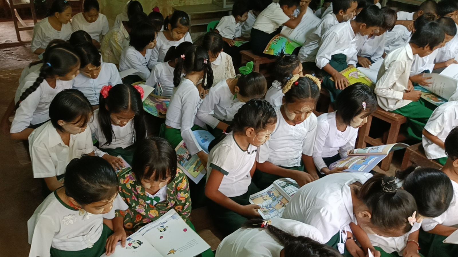ဆက်လက်၍ ကျောင်းသားကျောင်းသူများက ပြန်ကြားရေးနှင့်ပြည်သူ့ဆက်ဆံရေးဦးစီးဌာနမှ ခင်းကျင်းပြသထားသည့် စာအုပ်စာစောင်များကို စိတ်ကြိုက်ရွေးချယ်ဖတ်ရှုကာ စာဖတ်စွမ်းရည်ယှဉ်ပြိုင်ခြင်း၊ ပုံပြင်ပြော၊ ကဗျာရွတ်ဆို ယှဉ်ပြိုင်ခြင်းများ ပြုလုပ်ခဲ့ကြသည်။