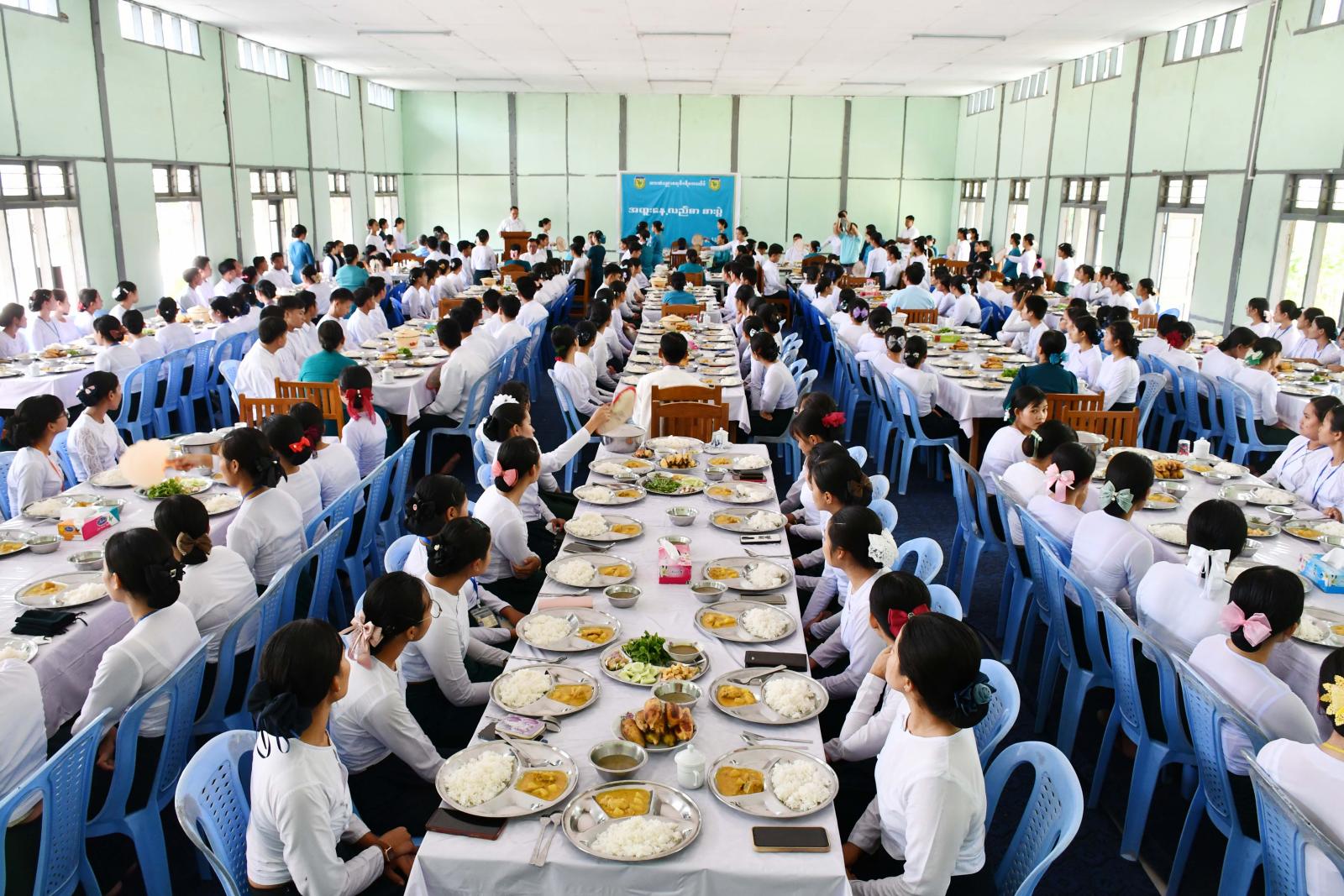 ထို့နောက် ပြည်နယ်ဝန်ကြီးချုပ်က နွေရာသီကျောင်းပိတ်ကာလတွင် နေရပ်သို့မပြန်နိုင်သော သင်တန်းသား၊ သင်တန်းသူများအတွက် ငွေကျပ် (၁၅) သိန်းကို ထောက်ပံ့ပေးအပ်ပြီး ဘားအံပညာရေးဒီဂရီကောလိပ်မှ သင်တန်းသား၊ သင်တန်းသူ (၆၇၄) ဦး၊ ကျောင်းအုပ်ကြီး၊ ဒုကျောင်းအုပ်ကြီး၊ ပါမောက္ခ၊ တွဲဘက်ပါမောက္ခ၊ ကထိက၊ လက်ထောက် ကထိက၊ နည်းပြဆရာ/ ဆရာမများနှင့်အတူ အထူးနေ့လယ်စာကို အတူတကွသုံးဆောင်ခဲ့ကြသည်။
