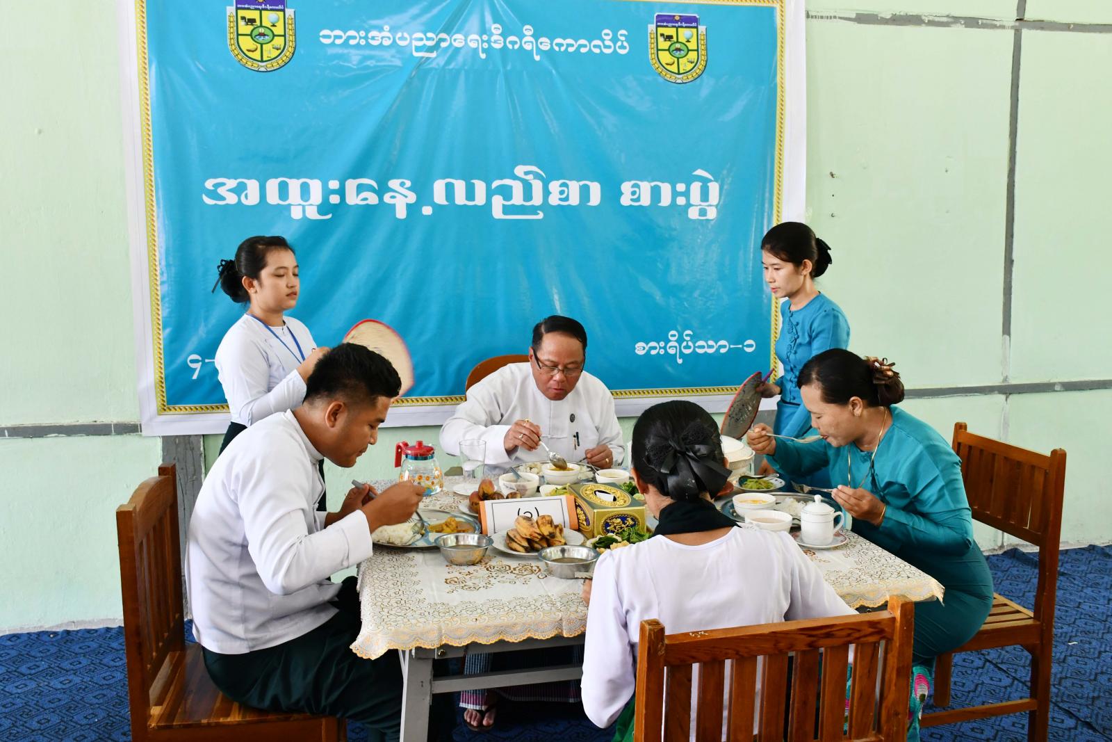 ကရင်ပြည်နယ်အစိုးရအဖွဲ့ ပြည်နယ်ဝန်ကြီးချုပ်ဦးစောမြင့်ဦးသည် ပြည်နယ်အစိုးရအဖွဲ့ဝင်များနှင့်အတူ ယမန်နေ့ နံနက် (၁၁) နာရီက ဘားအံပညာရေးဒီဂရီကောလိပ်ရှိ သင်တန်းသား၊ သင်တန်းသူများအတူ အထူးနေ့လယ်စာကို အတူတကွ သုံးဆောင်ခဲ့ကြသည်။