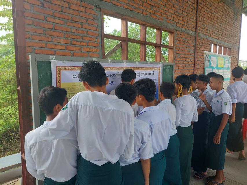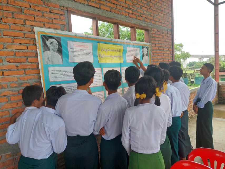 ထို့နောက် ပြန်ကြားရေးနှင့်ပြည်သူ့ဆက်ဆံရေးဦးစီးဌာနမှ ကျောင်းသား၊ ကျောင်းသူများ ဖတ်ရှုလေ့လာနိုင်ရန် ကလေးကဗျာများ၊ ရုပ်ပြပုံပြင်များ၊ စာစောင်များစသည့် ကလေးများအသိပညာတိုးပွားရေး စာအုပ်စာပေများ၊ စာဖတ်ရှိန်မြှင့်တင်ရေး၊ အာဇာနည်နေ့အထိမ်းအမှတ်တို့နှင့် ပတ်သက်သည့် ဆောင်းပါး၊ ကဗျာ၊ ကာတွန်းသိမှတ်ဖွယ်ရာများ စသည့်အသိပညာပေး နံရံကပ်စာစောင်များ ဓာတ်ပုံများကို ခင်းကျင်းပြသခဲ့ရာ ကျောင်းသား၊ ကျောင်းသူများက စိတ်ပါ၀င်စားစွာ ကြည့်ရှုလေ့လာခဲ့ကြောင်း သိရသည်။