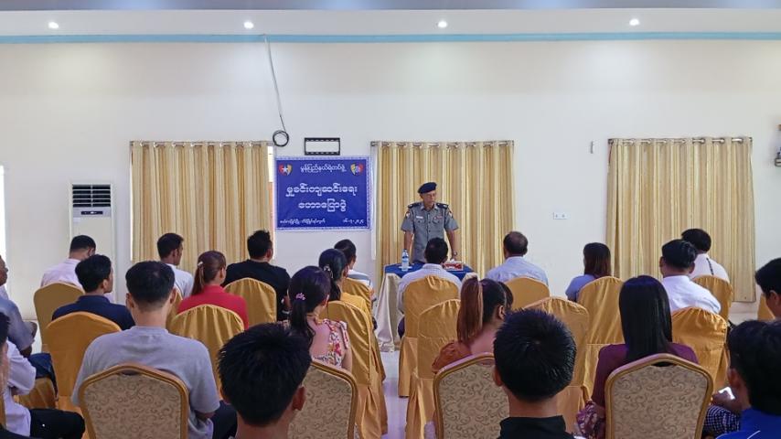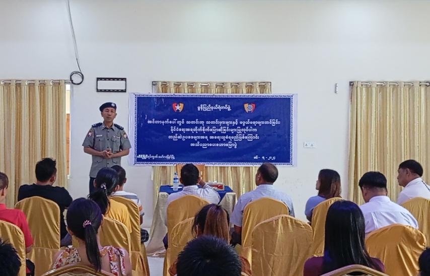 မွန်ပြည်နယ်၊ မော်လမြိုင်မြို့နယ်၌ မှုခင်းကျဆင်းရေးနှင့် အင်တာနက်ပေါ်တွင် သတင်းတု၊ သတင်းအမှားများတင်ခြင်း၊ နိုင်ငံရေးအရ တိုက်ခိုက်ပြောဆိုခြင်းများအပေါ် ဥပဒေကြောင်းအရ တားမြစ်အရေးယူခံရမည်ဖြစ်ကြောင်း၊ အသိပညာပေးဟောပြောပွဲကို ယနေ့နံနက်ပိုင်းက သီရိမြိုင်ရပ်ကွက်၊ သရက်ကုန်းရပ်၊ မွန်မင်းလမ်းဟိုတယ်ခန်းမ၌ ပြုလုပ်ခဲ့သည်။