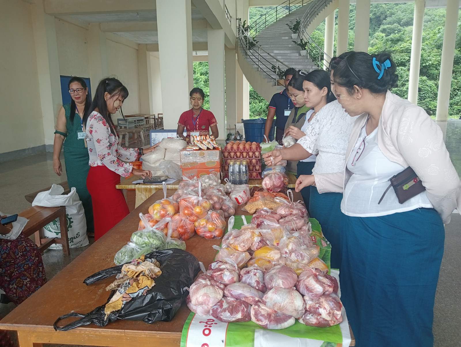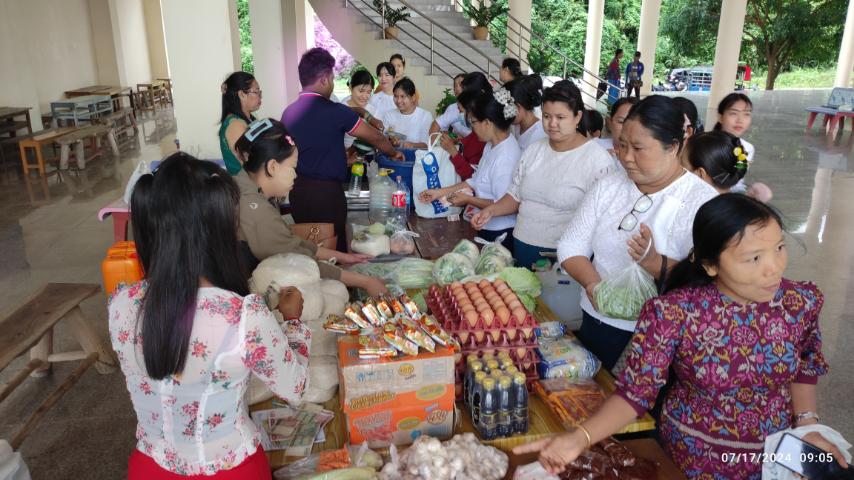 ထိုသို့ရောင်းချပေးရာတွင် ပေါ်ဆန်းမွှေးဆန် တစ်ပြည် ၅၅၀၀၊ ဧည့်မထဆန် တစ်ပြည် ၃၀၀၀ ကျပ်၊ စားအုန်းဆီ တစ်ပိဿာ ၆၀၀၀ ကျပ်နှင့် ကြက်သား၊ ဝက်သား၊ အမဲသား၊ ငါး၊ ကြက်ဥ၊ ဘဲဥ၊ ဟင်းသီးဟင်းရွက်၊ ကုန်စိမ်း၊ ကုန်ခြောက် စသည့် အခြေခံစားသောက်ကုန်အမျိုးမျိုးတို့ကို သတ်မှတ်ထားသည့် သက်သာသောဈေးနှုန်းတို့ဖြင့် စနစ်တကျ ရောင်းချပေးရာ ကွန်ပျူတာတက္ကသိုလ်(သထုံ) ပါမောက္ခချုပ် ဒေါက်တာနီလာသိန်းနှင့် ဆရာ၊ ဆရာမများ၊ ဝန်ထမ်းများက အေးချမ်းပျော်ရွှင်စွာဖြင့် လာရောက်ဝယ်ယူခဲ့ကြပြီး ခရိုင်နှင့်မြို့နယ် စီမံအုပ်ချုပ်ရေးအဖွဲ့ဝင်များနှင့် တာဝန်ရှိသူတို့က သွားရောက်ကြည့်ရှုအားပေးကာ လိုအပ်သည်တို့ကို ပေါင်းစပ်ညှိနှိုင်းဆောင်ရွက်ပေးခဲ့ကြသည်။