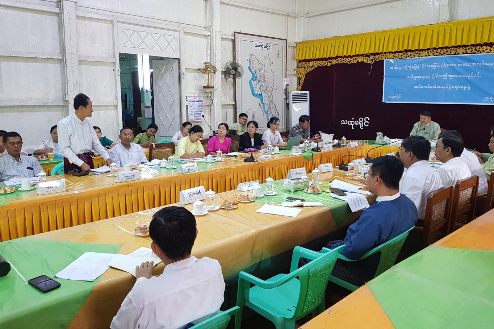 မွန်ပြည်နယ်၊ သထုံခရိုင် အဆိုးရွားဆုံးပုံစံဖြင့် ခိုင်းစေခြင်းခံရသော ကလေးအလုပ်သမားများ ဖယ်ရှားရေးနှင့် ပြန်လည်ကုစားရေးလုပ်ငန်းဆပ်ကော်မတီ၏ ကော်မတီဝင်များ ပေါင်းစပ်ညှိနှိုင်းအလုပ်ရုံဆွေးနွေးပွဲကို ယနေ့နံနက်က ခရိုင်အထွေထွေအုပ်ချုပ်ရေးဦးစီးဌာနရုံး အစည်းအဝေးခမ်းမ၌ ကျင်းပပြုလုပ်သည်။
