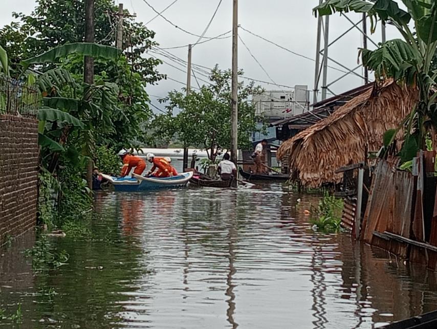 ရေဘေးရှောင်ပြည်သူများအား မြို့နယ်သဘာဝဘေးအန္တရာယ်ဆိုင်ရာ စီမံခန့်ခွဲမှုအဖွဲ့၏ဦးဆောင်မှုဖြင့် မြို့နယ်ဆရာဝန်ကြီး ဒေါက်တာမျိုးမင်းနှင့် ကျန်းမာရေးဝန်ထမ်းများက ကျန်းမာရေးစောင့်ရှောက်မှုလုပ်ငန်းများ ဆောင်ရွက်ပေးလျက်ရှိကြောင်း သိရသည်။
