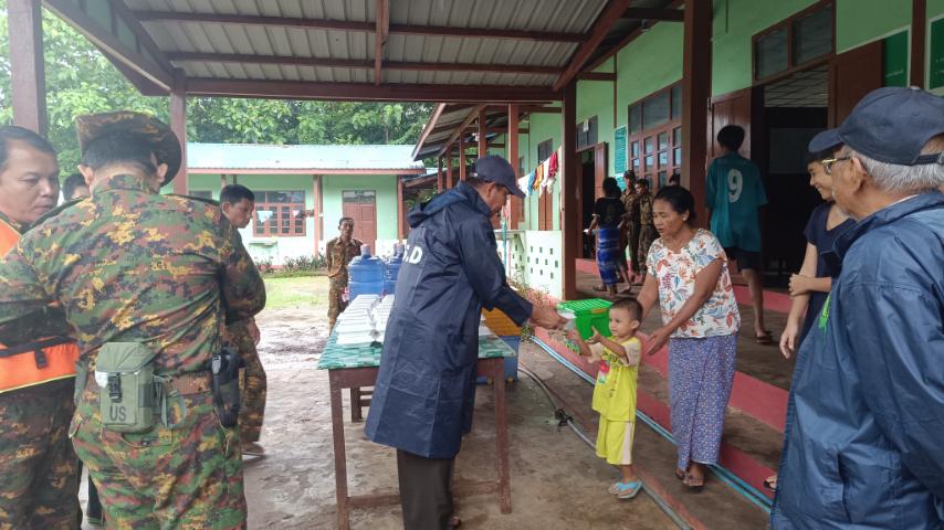 ကရင်ပြည်နယ်၊ ဖာပွန်ခရိုင်၊ ကမမောင်းမြို့၌ မိုးအဆက်မပြတ်ရွာသွန်းပြီး သံလွင်မြစ်ရေမြင့်တက်မှုကြောင့် ဒေသခံပြည်သူများ ယာယီရွှေ့ပြောင်းနေထိုင်လျက်ရှိသည့် ရေဘေးကယ်ဆယ်ရေးစခန်းများသို့ ကရင်ပြည်နယ်အစိုးရအဖွဲ့နှင့် အမှတ်(၈) စစ်ဆင်ရေးကွပ်ကဲမှုဌာနချုပ်မှ လှူဒါန်းသည့် စားသောက်ဖွယ်ရာများကို တာဝန်ရှိသူများက သွားရောက်လှူဒါန်းပေးခဲ့ကြောင်း ကမမောင်းမြို့ အထွေထွေအုပ်ချုပ်ရေးဦးစီးဌာနမှ သိရှိရသည်။