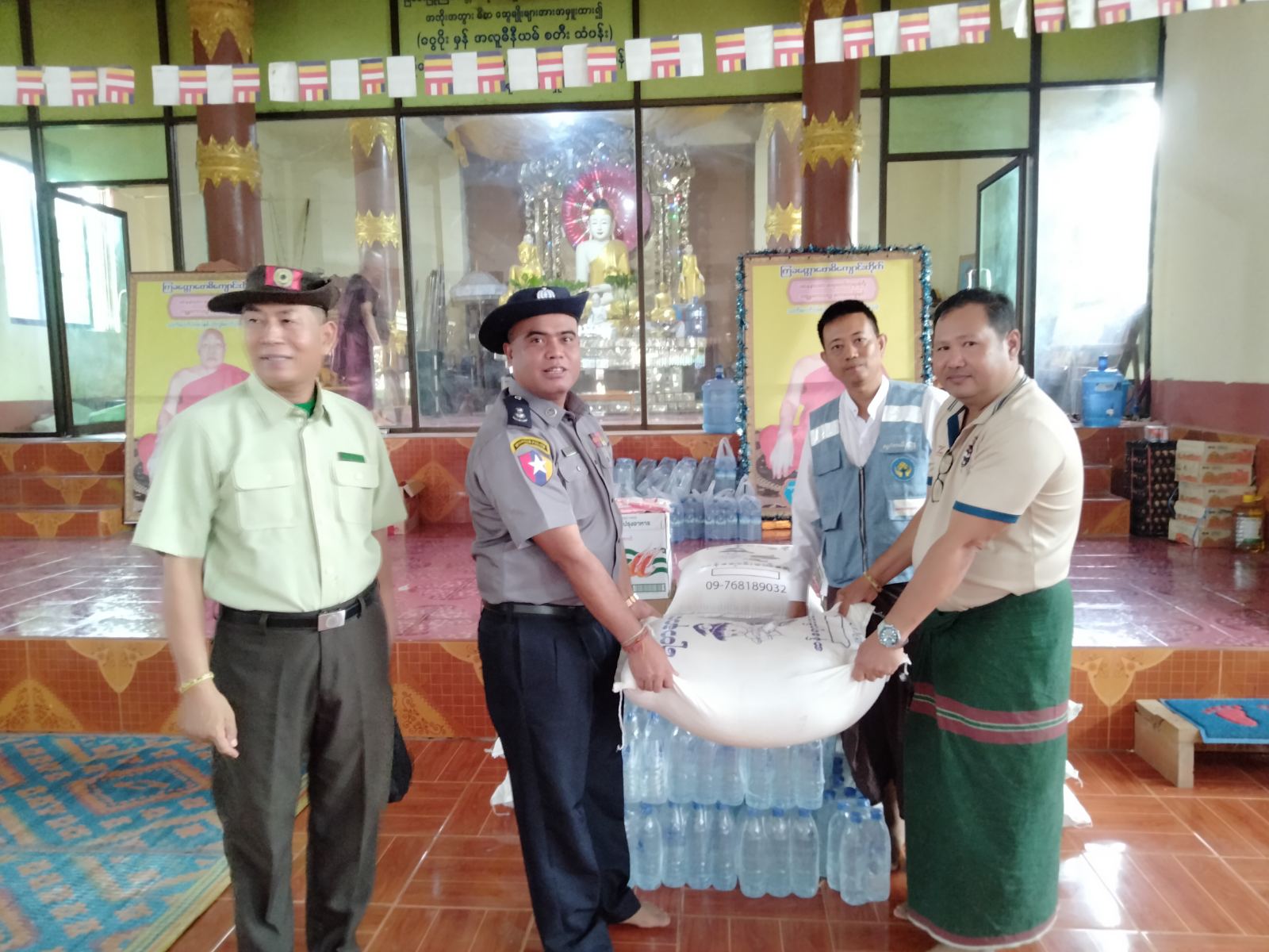 အဆိုပါ ရေဘေးသင့်ပြည်သူများအတွက် ထောက်ပံ့ပေးအပ်ရာတွင် ခရိုင်သဘာဝဘေးအန္တရာယ်ဆိုင်ရာ စီမံခန့်ခွဲမှုအဖွဲ့ဥက္ကဋ္ဌ ခရိုင်အုပ်ချုပ်ရေးမှူး ဦးကောင်းစံလင်း ဦးဆောင်၍ ခရိုင်ရဲတပ်ဖွဲမှူး ဒုတိယရဲမှူးကြီး မိုးကျော်ဟိန်း၊ ခရိုင်ဘေးအန္တရာယ်ဆိုင်ရာ စီမံခန့်ခွဲမှုဦးစီးဌာနမှ ဒုတိယညွှန်ကြားရေးမှူး ဦးဉာဏ်မြင့်၊ မြဝတီမြို့နယ် သဘာဝဘေးအန္တရာယ်ဆိုင်ရာ စီမံခန့်ခွဲမှုအဖွဲ့ဥက္ကဋ္ဌ မြို့နယ်အုပ်ချုပ်ရေးမှူး ဦးသက်လွင်နှင့် စခန်းအလိုက်တာဝန်ခံများက ဇူလိုင် ၂၇ တွင် စခန်း ၁၁ ခုရှိ လူဦးရေ ၄၉၈၅ ဦးတွက် အခြေခံစားသောက်ကုန်များဖြစ်သည့် ဆန် ၇၃၀၅ ပြည်နှင့် ဆီ ၆၁၄ ပိဿာကိုလည်းကောင်း၊ ဇူလိုင် ၂၈ တွင် စခန်းခုနှစ်ခုရှိ လူဦးရေ ၁၂၇၈ ဦးအတွက် ငါးသတ္တာ ၁၁၀၀ ဘူး၊ ဟင်းခတ်မှုန့် ၂၀ ထုပ်နှင့် ရေသန့် ၇၄၀ ဘူးအားလည်းကောင်း ထောက်ပံ့ပေးအပ်ခဲ့ပြီး အလားတူ ဒေသခံပြည်သူများကလည်း စခန်းအလိုက် အခြေခံစားသောက်ကုန်များ လာရောက်လှူဒါန်းပေးလျက်ရှိကြောင်း သိရသည်။