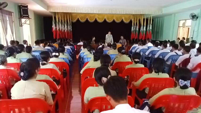 ဆက်လက်၍ ခရိုင်စီမံအုပ်ချုပ်ရေးအဖွဲ့ဝင် ဒုတိယရဲမှူးကြီးစိုးပိုင်က ပေါင်မြို့နယ်အနေဖြင့် ယာဉ်မတော်တဆ အဖြစ်များသည့်အတွက် ယာဉ်စည်းကမ်း၊ လမ်းစည်းကမ်းများကို စနစ်တကျလိုက်နာကြပါရန်နှင့် မလိုလားအပ်ဘဲ အသက်ဆုံးရှုံးမှုများကို မဖြစ်ပေါ်စေရန်လိုအပ်ပါကြောင်း ပြောကြားခဲ့သည်။ ယင်းနောက် ခရိုင်စီမံအုပ်ချုပ်ရေးအဖွဲ့ဝင် ဒုတိယဗိုလ်မှူးကြီးသန့်ဇင်ထွန်းက မိမိလုံခြုံရေး၊ ရုံးလုံခြုံရေးကို အလေးထားဆောင်ရွက်ကြရန် ပြောကြားခဲ့သည်။