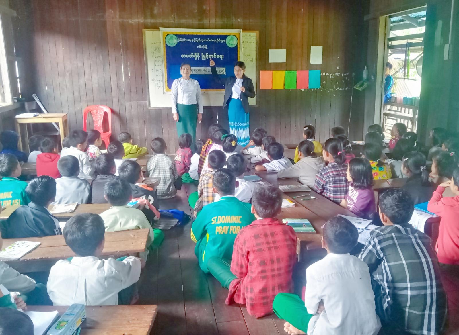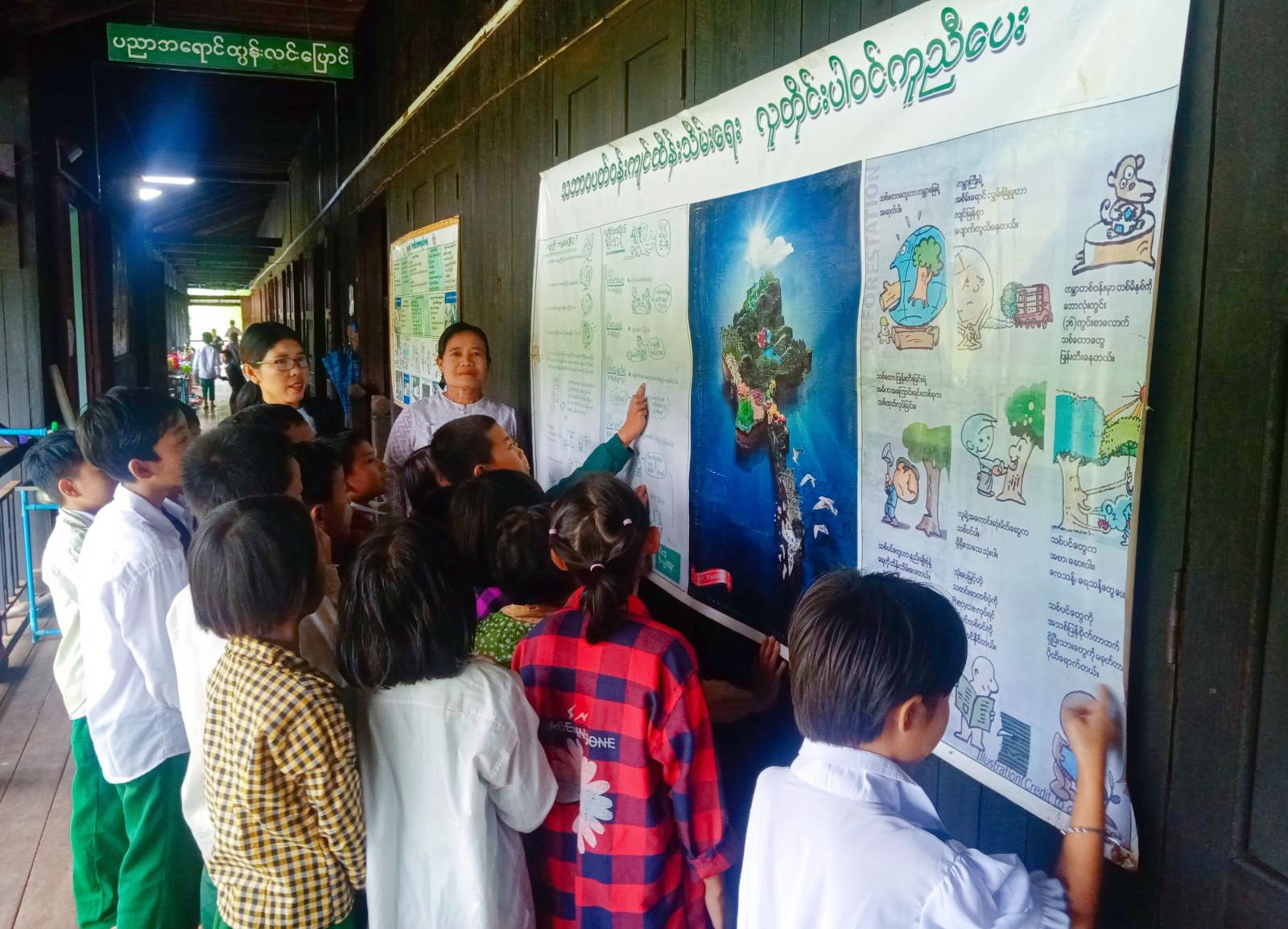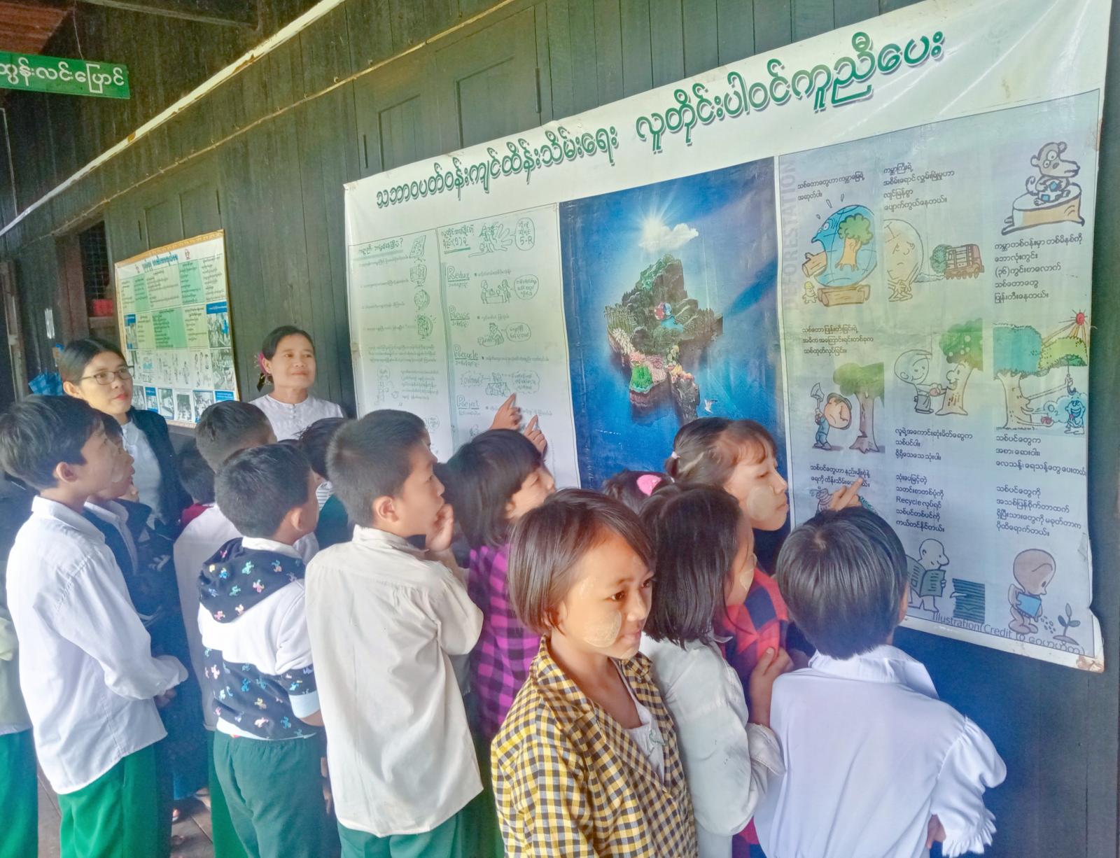 ဆက်လက်၍ ဟောပြောပွဲအပြီးတွင် သဘာ၀ပတ်ဝန်းကျင် ထိန်းသိမ်းကာကွယ်ရေး အသိပညာပေးနံရံကပ်စာစောင်အား ပြသခဲ့ရာ ကျောင်းသား/ကျောင်းသူများက လေ့လာကြည့်ရှု မှတ်သား၍ သိလိုသည်များအား မေးမြန်းခဲ့ကြောင်း သိရသည်။