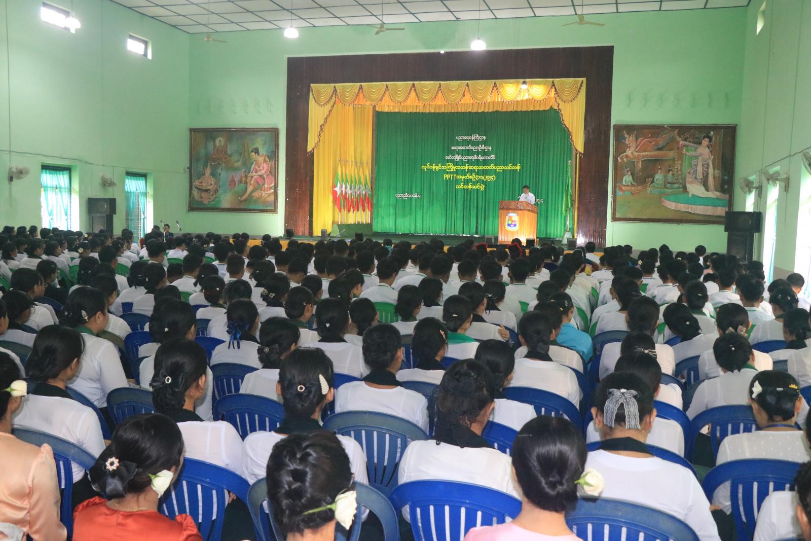ပညာရေးဝန်ကြီးဌာန၊ ဆရာအတတ်ပညာဦးစီးဌာန၊ မော်လမြိုင်ပညာရေးဒီဂရီကောလိပ် လုပ်ငန်းခွင်အကြိုမူလတန်းဆရာအတတ်ပညာသင်တန်း(PPTT) အမှတ်စဉ်(၁၁/၂ဝ၂၄)သင်တန်းဆင်းပွဲနှင့် ဆုချီးမြှင့်ပွဲအခမ်းအနားကို ယမန်နေ့နံနက်ပိုင်းက မော်လမြိုင်မြို့ပညာရေးဒီဂရီကောလိပ်၊ ပညာညီလာခန်းမတွင်ကျင်းပရာ မွန်ပြည်နယ်၀န်ကြီးချုပ် ဦးအောင်ကြည်သိန်း၊ ပြည်နယ်တရားလွှတ်တော်တရားသူကြီးချုပ်၊ ပြည်နယ်အစိုးရအဖွဲ့ဝင် ဝန်ကြီးများ၊ ဌာနဆိုင်ရာများ၊ ဆရာ၊ ဆရာမများ၊ သင်တန်းသား၊ သင်တန်းသူများ တက်ရောက်သည်။