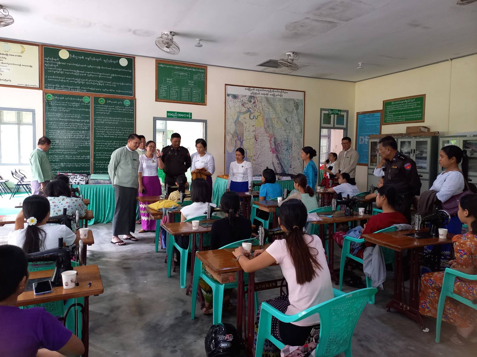 ကျေးလက်ဒေသဖွံ့ဖြိုးတိုးတက်ရေးဦးစီးဌာန၏ ဆင်းရဲနွမ်းပါးမှုလျှော့ချရေးလုပ်ငန်းစဥ်တစ်ခုအဖြစ် အခမဲ့ဖွင့်လှစ်သည့် ကျေးလက်နေအမျိုးသမီးများ ဝင်ငွေတိုးပွားစေရေး သက်မွေးအထောက်အကူပြု အဆင့်မြင့်အပ်ချုပ်စက်သင်တန်းဖွင့်ပွဲကို ယနေ့နံနက်က မွန်ပြည်နယ်၊ သထုံမြို့၊ လိပ်အင်းရပ်ကွက်ရှိ မြို့နယ်ကျေးလက်ဒေသဖွံ့ဖြိုးတိုးတက်ရေးဦးစီးဌာနရုံး၌ ကျင်းပပြုလုပ်သည်။
