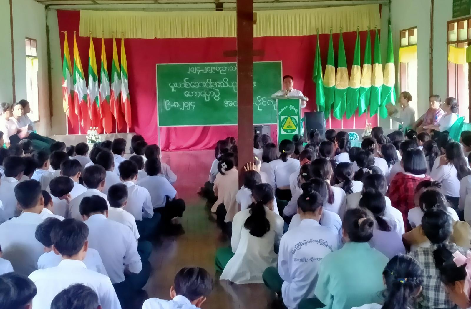 လူ့စွမ်းအားအရင်းအမြစ်ဖြစ်သည့် ကျောင်းသားလူငယ်များ စည်းကမ်းပြည့်ဝပြီး စိတ်ဓာတ်စွမ်းရည်နှင့် ဉာဏစွမ်းရည်မြှင့်မားစေရေးအတွက် ယမန်နေ့က ပိုင်ကျုံမြို့ အခြေခံပညာအထက်တန်းးကျောင်း၌ မူးယစ်ဆေးဝါးအန္တရာယ် တားဆီးကာကွယ်ရေးအသိပညာဟောပြောပွဲနှင့် နံရံကပ်စာစောင်ပြပွဲ နယ်လှည့်ကွင်းဆင်း ဆောင်ရွက်ခဲ့သည်။