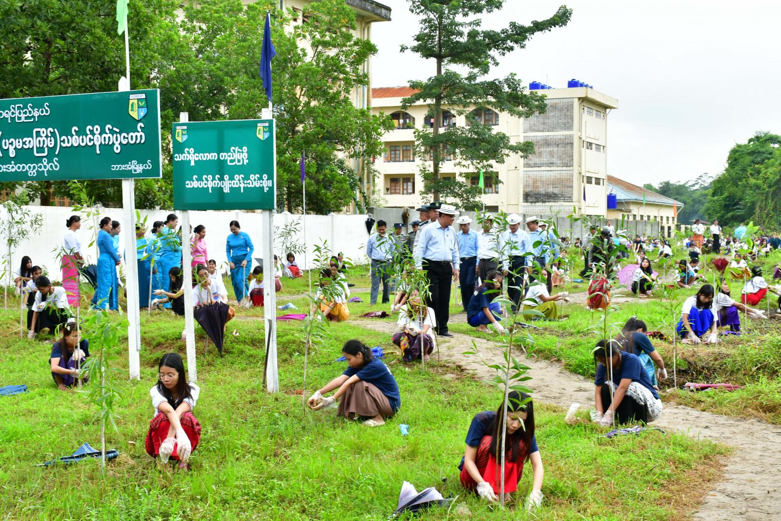 ယခုနှစ်မိုးရာသီတွင် ကရင်ပြည်နယ်အတွင်း သစ်တောဦးစီးဌာနမှ ပျိုးပင်ပေါင်း နှစ်သိန်းခုနှစ်သောင်းကျော် စိုက်ပျိုးသွားရန် လျာထားဆောင်ရွက်လျက်ရှိရာ ယခုအခါ နှစ်သိန်းနှစ်သောင်းကျော် ရာခိုင်နှုန်းအားဖြင့် ၈၁ ဒဿမ ၆၀ ရာခိုင်နှုန်း စိုက်ပျိုးပြီးစီးပြီဖြစ်ကြောင်း သိရပြီး ယနေ့နံနက် ၇ နာရီက ဘားအံတက္ကသိုလ် ပတ္တမြားနယ်မြေတွင် မိုးရာသီ(ပဥ္စမအကြိမ်) သစ်ပင်စိုက်ပွဲ ကျင်းပခဲ့ကြောင်း သိရသည်။