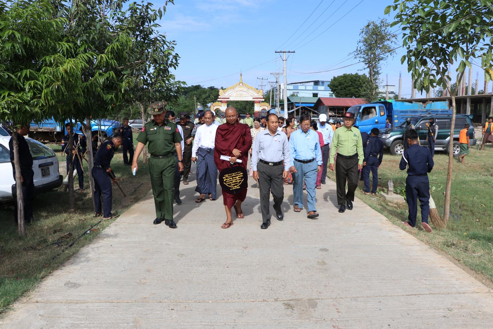 အလားတူ စစ်ကိုင်းတိုင်းဒေသကြီးအတွင်းရှိ နာဂကိုယ်ပိုင်အုပ်ခွင့်ရဒေသနှင့် ခရိုင် ၁၃ ခရိုင်၊ မြို့နယ် ၁၃ မြို့နယ်တို့တွင် တပ်မတော်သားများ၊ မြန်မာနိုင်ငံရဲတပ်ဖွဲ့ဝင်များ၊ မီးသတ်တပ်ဖွဲ့ဝင်များ၊ ဌာနဆိုင်ရာဝန်ထမ်းများနှင့် စည်ပင်သာယာရေးအဖွဲ့များ စုစုပေါင်းအင်အား ၁၇၀၀ ကျော်ဖြင့် ဘုန်းတော်ကြီးကျောင်းများနှင့် မြို့သန့်ရှင်းသာယာလှပရေးလုပ်ငန်းများကို စုပေါင်းဆောင်ရွက်ခဲ့ကြောင်း သိရသည်။