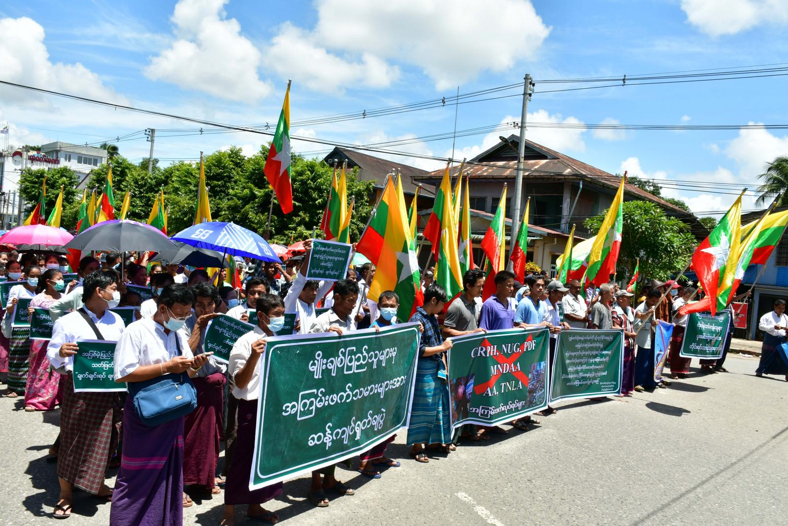 ရှမ်းပြည်နယ်မြောက်ပိုင်း၌ ဖြစ်ပွားနေသောအကြမ်းဖက် MNDAA သောင်းကျန်းသူများနှင့် အပေါင်းအပါအဖွဲ့အစည်းများအား ဆန့်ကျင်ရှုတ်ချဆန္ဒထုတ်ဖော်ပွဲကို ယမန်နေ့ နေ့လယ်ပိုင်းက ဘားအံမြို့၊ အမှတ်(၃)ရပ်ကွက်၊ ဗိုလ်ချုပ်လမ်း၊ နာရီစင်၌ စုရုံး၍ ဒေသခံပြည်သူ ၆၅၀ ကျော် ဆန္ဒထုတ်ဖော်ခဲ့ကြသည်။