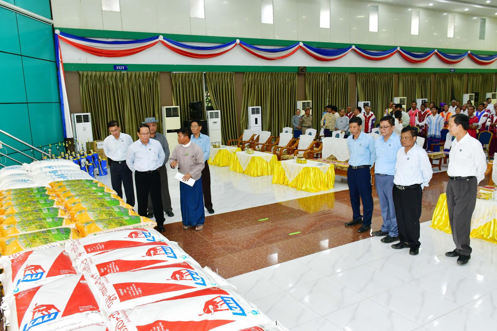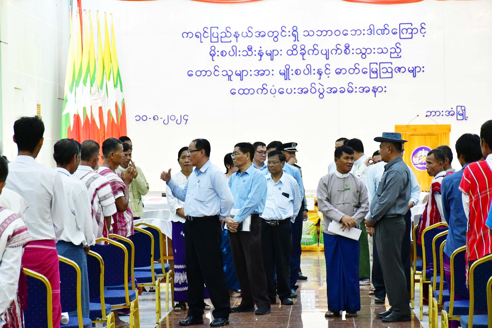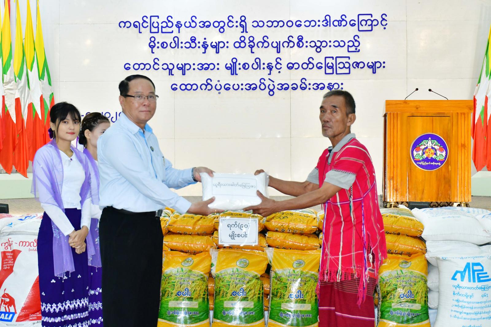 ကရင်ပြည်နယ်အတွင်း ဇူလိုင်လ တတိယပတ်ခန့်မှစ၍ မိုးသည်းထန်စွာအဆက်မပြတ်ရွာသွန်းပြီး မြစ်ရေ၊ ချောင်းရေများ စံချိန်တင်မြင့်တက်မှုကြောင့် ရေကြီးရေလျှံမှုများဖြစ်ပွားခဲ့ရာ သဘာဝဘေးဒဏ်များကြောင့် စိုက်ပျိုးပြီး မိုးစပါးသီးနှံများထိခိုက်ပျက်စီးသွားသည့် တောင်သူများအား မျိုးစပါးနှင့်ဓာတ်မြေဩဇာများ ထောက် ပံ့ပေးအပ်သည့်အခမ်းအနားကို ယမန်နေ့နံနက် ၉ နာရီကဘားအံမြို့၊ ဇွဲကပင်ခန်းမ၌ကျင်းပခဲ့သည်။