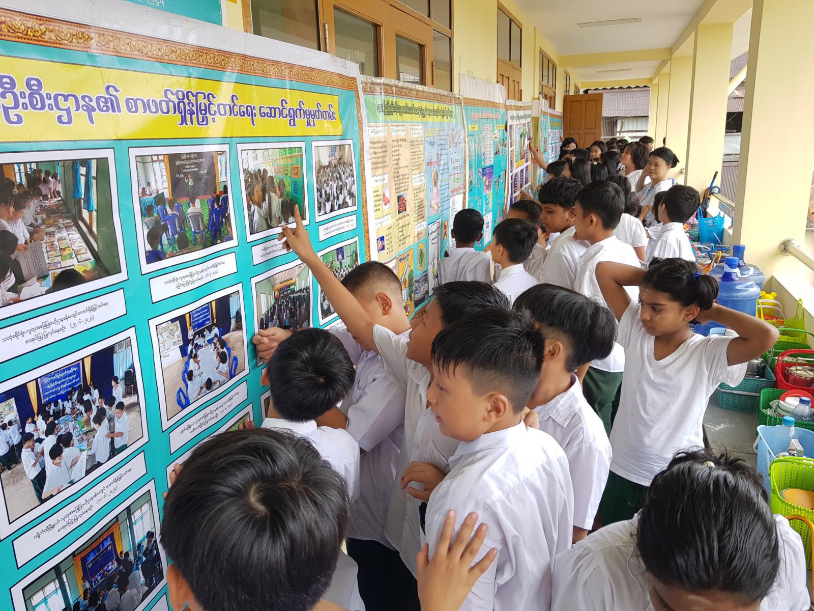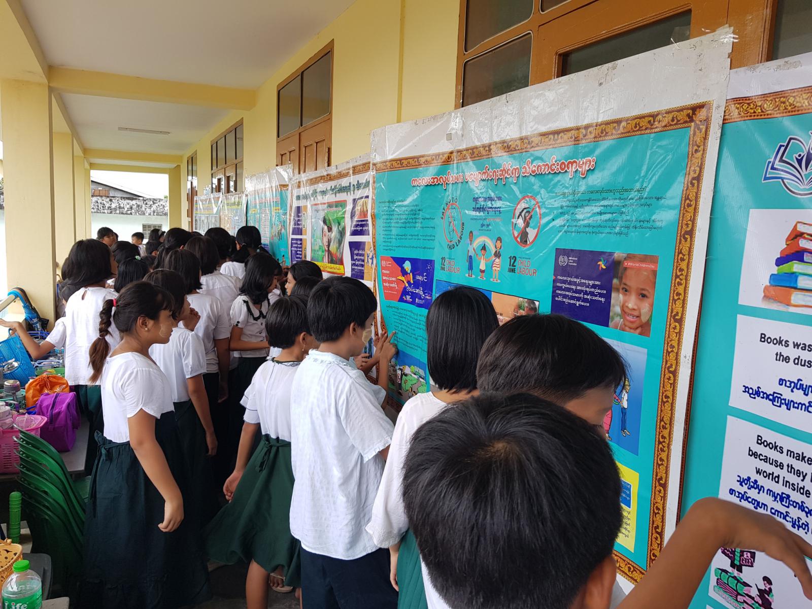 အဆိုပါ အသိပညာပေးလုပ်ငန်းတွင် ပြန်ကြားရေးနှင့်ပြည်သူ့ဆက်ဆံရေးဦးစီးဌာနမှ ကျောင်းသူ/ကျောင်းသားများ ဖတ်ရှုလေ့လာနိုင်ရန် ကလေးကဗျာများ၊ ရုပ်ပြပုံပြင်များ၊ စာစောင်များ စသည့် ကလေးများ အသိပညာတိုးပွားရေး စာအုပ်စာပေများနှင့် စာဖတ်ရှိန်မြှင့်တင်ရေး၊ မူးယစ်ဆေးဝါးအန္တရာယ် သတိပြုကာကွယ်ရေး စသည့် အသိပညာပေး နံရံကပ်စာစောင်များတို့ကို ခင်းကျင်းပြသရာ ကျောင်းသား၊ ကျောင်းသူများမှ စိတ်ပါ၀င်စားစွာ ကြည့်ရှုလေ့လာခဲ့ကြောင်း သိရသည်။