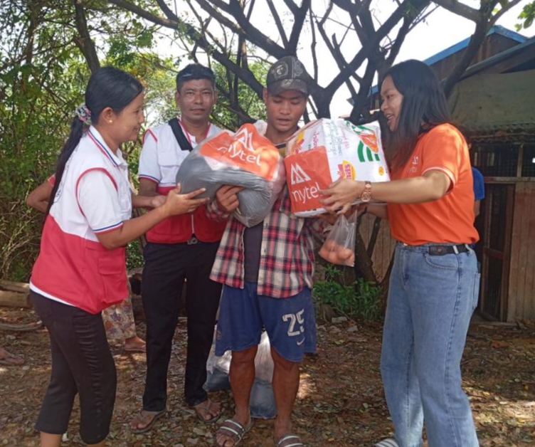 အဆိုပါလုပ်ငန်းများ ဆောင်ရွက်တွင် Mytel ဆက်သွယ်ရေးအော်ပရေတာမှ ဦးသန့်ဇော်ဦး (Business Manager) နှင့် အဖွဲ့ဝင်များ၊ လှိုင်းဘွဲမြို့နယ်၊ မြို့နယ် ကြက်ခြေနီတပ်ဖွဲ့မှ ဒု-မြို့နယ်တပ်ဖွဲ့မှူး ဒေါ်အိအိဖြူနှင့် တာဝန်ရှိသူများတို့က အမှတ်(၃)ရပ်ကွက်ရှိ ဆင်းရဲနွမ်းပါးသည့် ရေဘေးသင့် အိမ်ထောင်စု(၅၀)စု၊ လူဦးရေကျား (၁၂၀)ဦး၊ မ(၁၃၂)ဦး၊ စုစုပေါင်း(၂၅၂)ဦးတို့အတွက် အိမ်ထောင်စု(၁)စုလျင် ဆန်(၄)ပြည်၊ ဆီ(၁)လီတာ၊ ဆား(၂)ထုပ်၊ အချိုမှုန့် (၂)ထုပ်၊ ကြက်သွန်နီ(၁)ပိဿာ၊ ကြက်ဥ(၆)လုံး၊ ခေါက်ဆွဲခြောက် (၃)ထုပ်နှုန်းဖြင့် စုစုပေါင်း (၂၄) ပြည်ပါ ဆန်(၈)အိတ်နှင့်(၈)ပြည်၊ ဆီ(၅၀)လီတာ၊ ဆား(၁၀၀)ထုပ်၊ အချိုမှုန့် (၁၀၀)ထုပ်၊ ကြက်သွန်နီ(၅၀)ပိဿာ၊ ကြက်ဥ(၃၀၀) လုံး၊ခေါက်ဆွဲခြောက်(၁၅၀)ထုပ်တို့အား ထောက်ပံ့ပေးအပ်ခဲ့ကြောင်း သိရသည်။