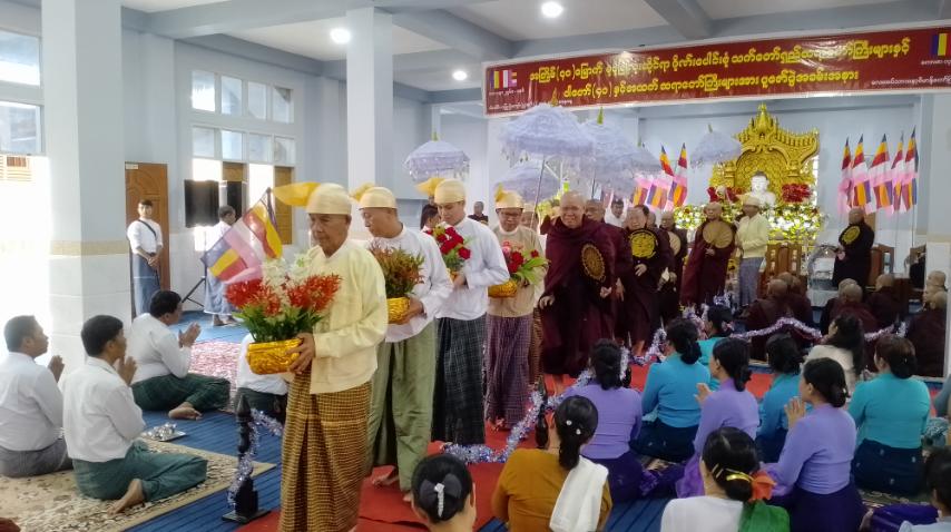 ဦးစွာ နမောတဿ သုံးကြိမ်ရွတ်ဆို၍ အခမ်းအနားအား စတင်ဖွင့်လှစ်ခဲ့ပြီး မြို့နယ်သံဃနာယကဥက္ကဋ္ဌ ဂျုံးဂျုံးကျတောရကျောင်းဆရာတော် ဘဒ္ဒန္တကိတ္တိဝဏ္ဏထံမှ မြို့နယ်စီမံအုပ်ချုပ်ရေးအဖွဲ့ဥက္ကဋ္ဌ ဦးပြည်သိမ်းနှင့် အဖွဲ့ဝင်များ၊ မြို့နယ်ဌာနဆိုင်ရာ တာဝန်ရှိသူများနှင့် ဧည့်ပရိသတ်အပေါင်းတို့က သီလတော်မြတ်ခံယူသည်။ ထို့နောက် ဆရာတော်ကြီးများအား ပူဇော်ကန်တော့၍ ဆရာတော်ကြီး (၂၃)ပါးမှ မေတ္တသုတ်ပရိတ်တရားတော်များ ရွတ်ပွားချီးမြှင့်တော်မူသည်။