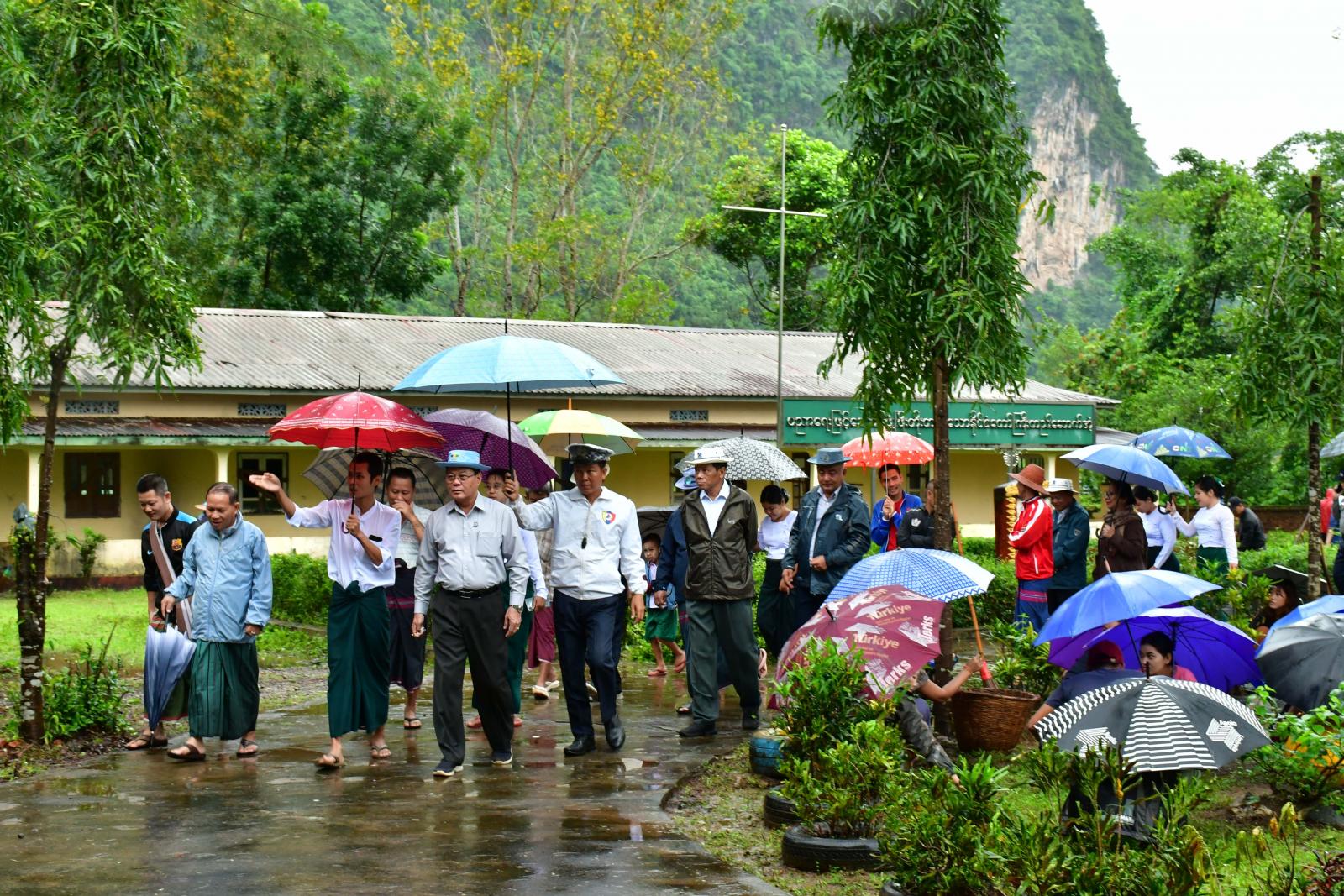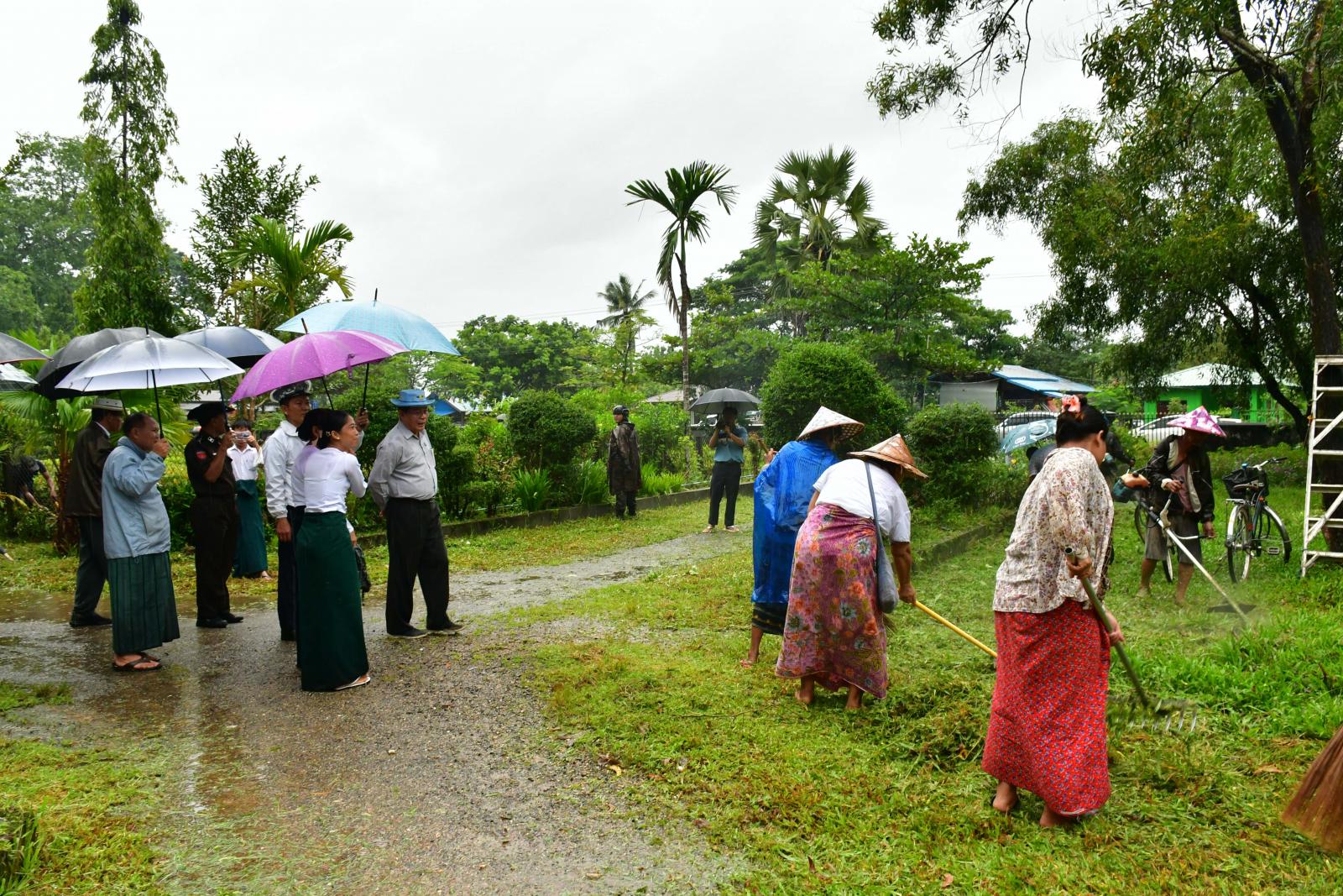 ဦးစွာ ပြည်နယ်ဝန်ကြီးချုပ်၊ ပြည်နယ်တရားလွှတ်တော်တရားသူကြီးချုပ် ဒေါ်ခင်ဆွေထွန်း၊ ပြည်နယ်အစိုးရ အဖွဲ့ဝင်များနှင့် တာဝန်ရှိသူများသည် ဘားအံမြို့နယ်၊ ရဲသာရွာသစ် အမှတ်(၂၀)အခြေခံပညာမူလတန်းကျောင်း၊ ရဲသာကျေးရွာ အမှတ်(၁၉)အခြေခံပညာမူလတန်းကျောင်း၊ ကမော့ကစင်ကျေးရွာ အခြေခံပညာအထက်တန်းကျောင်း(ခွဲ)၊ တော်ပုံကျေးရွာ အခြေခံပညာအလယ်တန်းကျောင်း(ခွဲ)၊ ဒုံရင်းကျေးရွာ အခြေခံပညာအထက်တန်းကျောင်းနှင့် အဆိုပါအထက်တန်းကျောင်းတွင် တွဲဘက်ဖွင့်လှစ်ထားသော စိုက်ပျိုးရေး၊ မွေးမြူရေးအထက်တန်းကျောင်းတို့တွင် ပြည်နယ်စည်ပင်သာယာရေးအဖွဲ့၏ ဦးဆောင်မှုဖြင့် မြန်မာနိုင်ငံရဲတပ်ဖွဲ့ဝင်များ၊ မီးသတ်တပ်ဖွဲ့ဝင်များ၊ ဌာနဆိုင်ရာဝန်ထမ်းများ၊ ရပ်ကွက်နေပြည်သူများ စုစုပေါင်းအင်အား ၁၀၈၀ ကျော်ဖြင့် ယာဉ်ယန္တရားများအသုံးပြု၍ သစ်ပင်၊ သစ်ကိုင်းများခုတ်ထွင်ရှင်းလင်းခြင်း၊ ခြုံနွယ်ပိတ်ပေါင်းများ ရှင်းလင်းခြင်း၊ စွန့်ပစ်ပလက်စတစ်နှင့် အမှိုက်များ ဖယ်ရှားခြင်း၊ ရေမြောင်းများရေစီးရေလာကောင်းမွန် စေရေးဆောင်ရွက်ခြင်း အစရှိသည့်စုပေါင်းသန့်ရှင်းရေးလုပ်ငန်း များဆောင်ရွက်နေမှုများကို လှည့်လည်ကြည့်ရှုအားပေးခဲ့ကြပြီး အဆိုပါကျောင်းများ၌ စာသင်ခန်း၊ စာသင်ဆောင်၊ ပရိဘောဂ၊ သင်ထောက်ကူပစ္စည်းများ၊ သန့်စင်ခန်းများ ပြည်စုံလုံလောက်မှု ရှိ/မရှိ လှည့်လည်ကြည့်ရှုစစ်ဆေးကာ စာသင်ကျောင်းများအား သန့်ရှင်းသပ်ရပ်သော ပတ်ဝန်းကျင်ကောင်းများအဖြစ် အစဉ်ဖန်တီးပေးကြရန်မှာကြား၍ လိုအပ်သည်များအား တာဝန်ရှိသူများနှင့် ပေါင်းစပ်ညှိနှိုင်းဖြည့်ဆည်းဆောင်ရွက်ပေးခဲ့သည်။