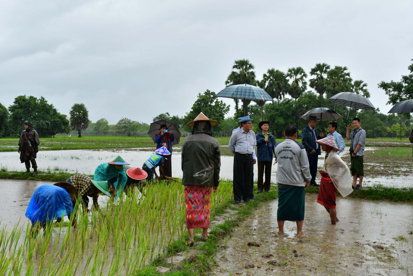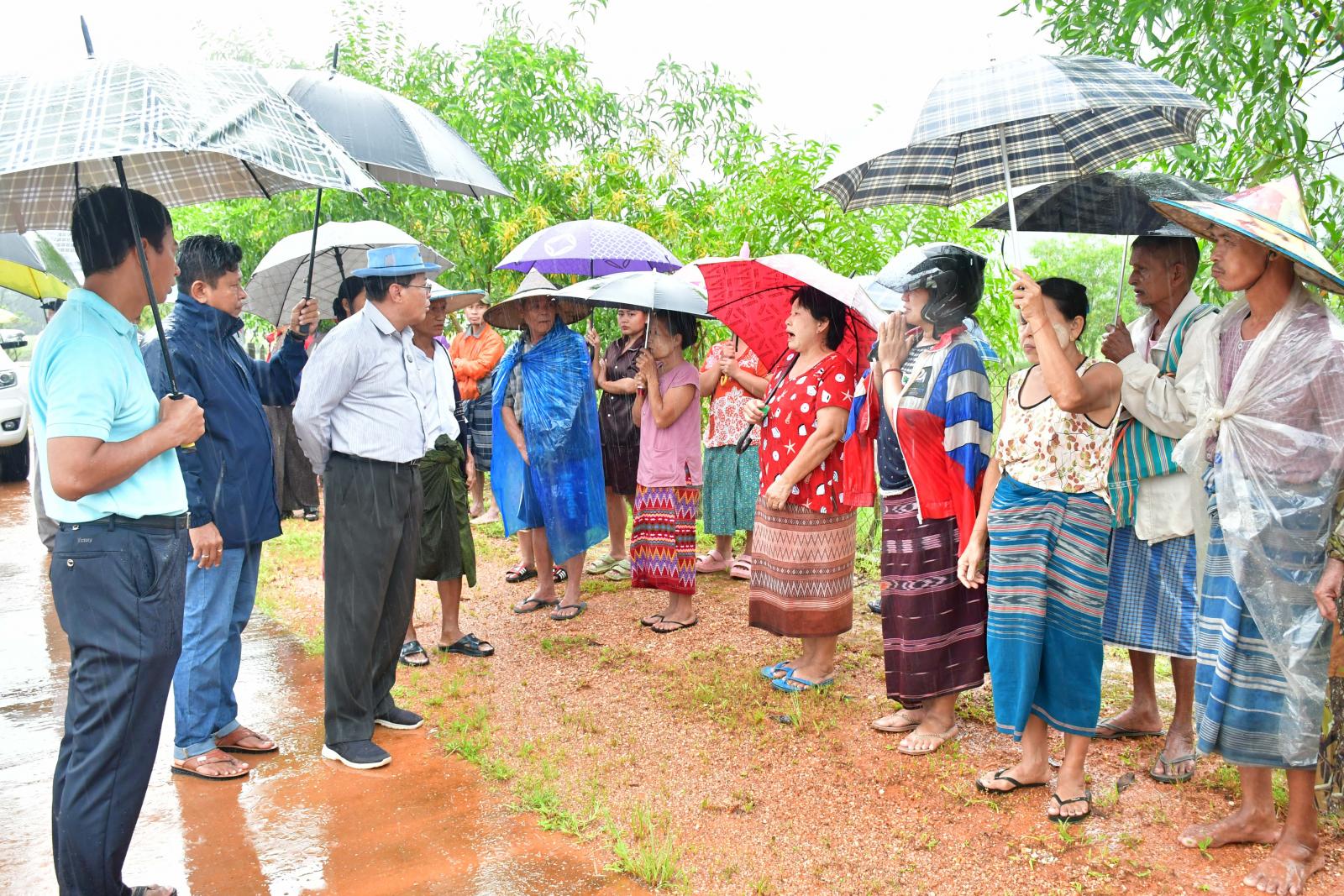ဆက်လက်၍ ပြည်နယ်အတွင်း ဇူလိုင်လ တတိယအပတ်နှင့် ဩဂုတ်လအစောပိုင်းတို့တွင် မိုးသည်းထန်စွာ အဆက်မပြတ်ရွာသွန်းပြီး မြစ်ရေချောင်းရေများ စံချိန်တင်မြင့်တက်မှုကြောင့် ရေကြီးရေလျှံမှုများဖြစ်ပေါ်ခဲ့ရာ စိုက်ပျိုးပြီး မိုးစပါးများရေကြီးနစ်မြုပ်ကာ ထိခိုက်ပျက်စီးမှုများ ဖြစ်ပေါ်ခဲ့သည့်အတွက် ပြည်နယ်ဝန်ကြီးချုပ်နှင့်အဖွဲ့သည် တော်ပုံကျေးရွာအုပ်စုအတွင်း ရေကြီးနစ်မြုပ်မှုကြောင့် ထိခိုက်ပျက်စီးသွားသော မိုးစပါးစိုက်ခင်းများအား တောင်သူများမှ ပြန်လည်စိုက်ပျိုးနေမှုအခြေအနေများကို သွားရောက်ကြည့်ရှုအားပေးပြီး တာဝန်ရှိသူများအား လိုအပ်သည်များ မှာကြားသည်။