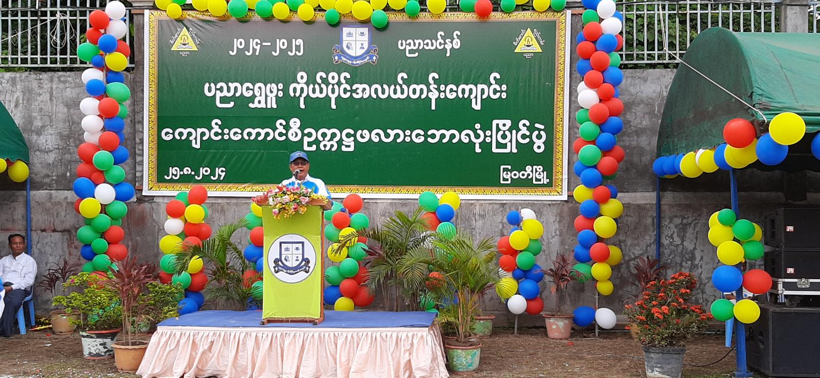ဆက်လက်၍ ကျောင်းကောင်စီဥက္ကဋ္ဌ အမှတ်(၃) အခြေခံပညာအထက်တန်းကျောင်းအုပ်ဆရာကြီး ဦးညီညီအောင်က ပြိုင်ပွဲကျင်းပရခြင်း ရည်ရွယ်ချက်သည် ကျောင်းပညာသင်နှစ် ပညာရေးပြက္ခဒိန်အရ တစ်နှစ်အတွင်း ဆောင်ရွက်ပေးရမည်ဖြစ်ကြောင်း၊ ကျောင်းသား၊ ကျောင်းသူများအနေဖြင့် ကျောင်းစာသင်ကြားသင်ယူမှုအပြင် ကာယ၊ ဉာဏ၊ စာရိတ္တ၊ မိတ္တ၊ ရသ သက်မွေးဘက်စုံ ပညာရေးဆိုသည့် စနစ်သစ်ပညာရေးတွင် ဘက်စုံလွှမ်းခြုံနိုင်ပြီး ထူးချွန်ထက်မြက်နေစေရန် ဆောင်ရွက်ခြင်းဖြစ်ကြောင်း ပြောကြားသည်။