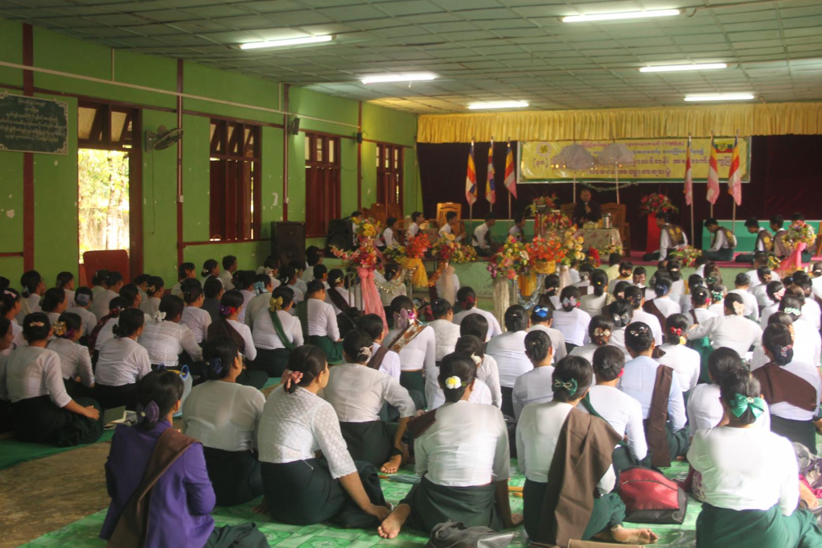 ဦးစွာအခမ်းအနားကို တက်ရောက်လာသူများမှ နမောတဿ(၃)ကြိမ်ရွတ်ဆို ဖွင့်လှစ်ခဲ့ပြီးနောက် မော်လမြိုင်မြို့ မဟာမြိုင်ကျောင်းတိုက်ဆရာတော် (၁၅)ဘွဲ့ရဘဒ္ဒန္တဝိမလာဘိဝံသ ဟိတဓရ ဆရာတော်ဘုရားထံမှ ငါးပါးသီလခံယူဆောက်တည်ခဲ့ကြပြီး ဆရာတော်ထံမှ တရားဒေသနာ တော်ခံယူနာကြားခြင်း၊ ဆရာတော်အား ဓမ္မပူဇာဆက်ကပ် လှူဒါန်းခြင်း၊ YMBA အဖွဲ့အား အလှူတော်ငွေလှူဒါန်းခြင်းနှင့် ဆရာတော်မှ လှူဒါန်းမှုအစုစုတို့ကို ရေစက်သွန်းချ အမျှပေး ဝေခဲ့သည်။