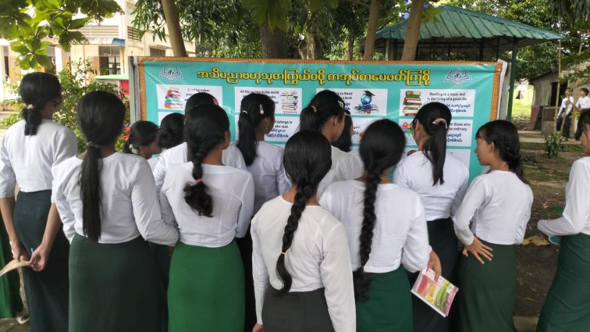 ဆက်လက်၍ စကားဝိုင်းကိုကျင်းပရာ ပြန်ကြားရေးနှင့်ပြည်သူ့ဆက်ဆံရေးဦးစီးဌာနမှ လက်ထောက်ညွှန်ကြားရေးမှူးဒေါ်လှလှဌေးက အစီအစဉ်တင်ဆက်သူအဖြစ်ဆောင်ရွက်ပြီး Grade-10 နှင့် Grade -9 ကျောင်းသား၊ ကျောင်းသူလေးဦးတို့က လူငယ်နှင့်ရည်မှန်းချက်၊ လူငယ်နှင့်စာဖတ်ခြင်း၊ မိမိအနှစ်သက်ဆုံးစာအုပ်တစ်အုပ်နှင့် စာကြည့်တိုက်၏ အကျိုးကျေးဇူးများခေါင်းစဉ်တို့ဖြင့် ၎င်းတို့ဖတ်ရှုလေ့လာထားသည့် စာရေးသူ၏ဆိုလိုရင်းနှင့် ၎င်းတို့၏ အတွေ့အကြုံများ၊ အတွေးအခေါ်များတိုကို ကျယ်ကျယ်ပြန့်ပြန့် မျှဝေဆွေးနွေးကြရာ အစီအစဉ်တင်ဆက်သူက ပြန်လည်ဖြည့်စွက် ဆွေးနွေးပေးခဲ့သည်။